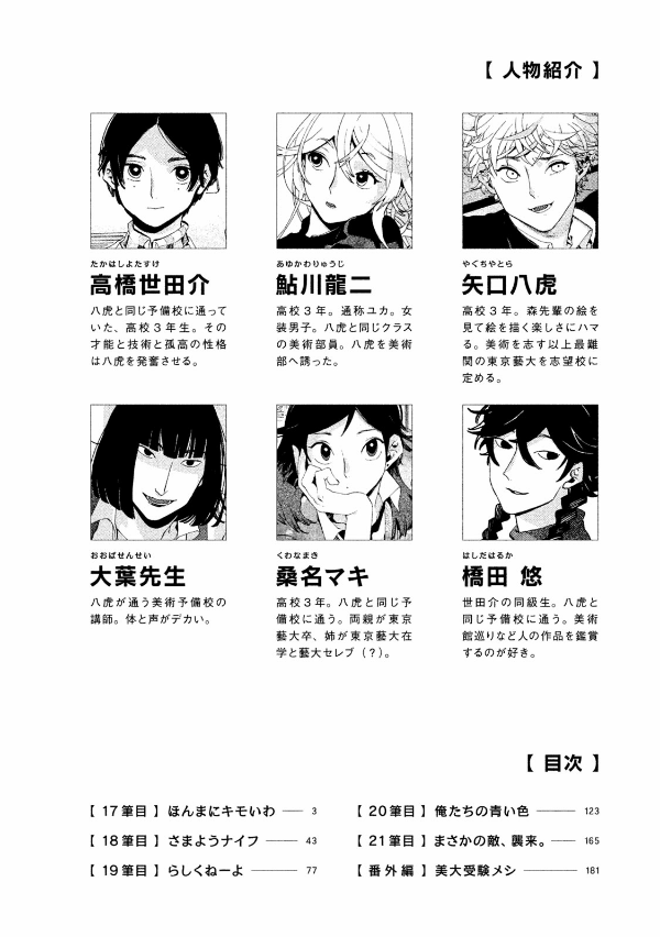 成績優秀、世渡り上手なリア高校男子が絵を描く喜びに目覚め、美大を目指す! 藝大実技1次試験、ハプニングがあったもののなんとか乗り切った八虎。そんな中、龍二が試験を放棄したことを知り2次試験への準備に集中できなくなってしまう…。 読めば何かを始めたくなる! 超話題の伝染性青春漫画、待望の第5巻!