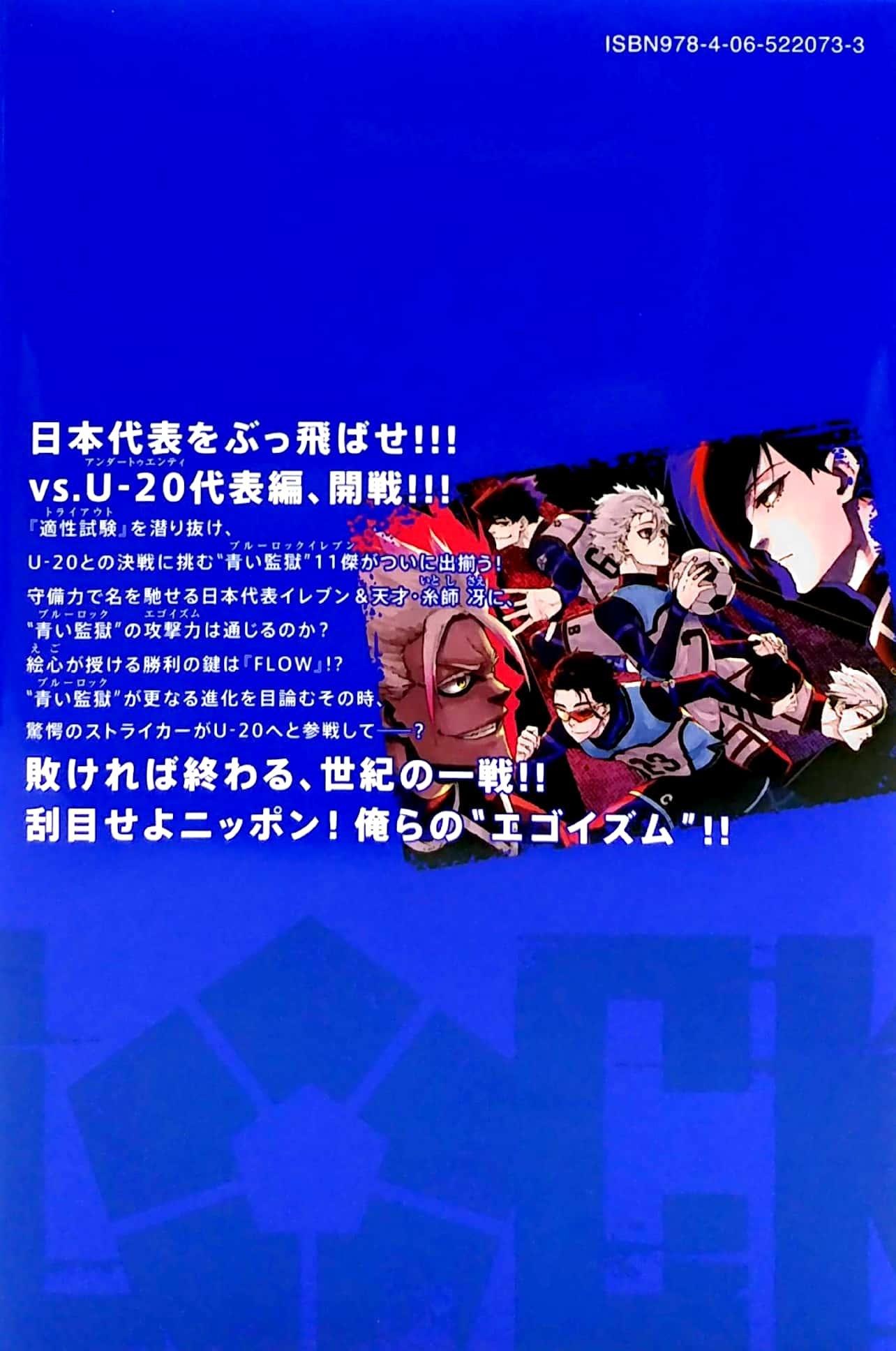 『適性試験(トライアウト)』を潜り抜け、U-20との決戦に挑む”青い監獄”11傑がついに出揃う! 守備力で名を馳せる日本代表イレブン&天才・糸師 冴に、”青い監獄(ブルーロック)”の攻撃力は通じるのか? 絵心が授ける勝利の鍵は『FLOW』!”青い監獄”が更なる進化を目論むその時、驚愕のストライカーがU-20へと参戦して──? 敗ければ終わる、世紀の一戦!! 刮目せよニッポン! 俺らの”エゴイズム”!!