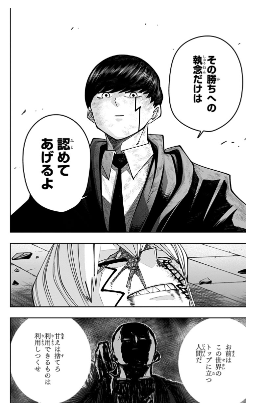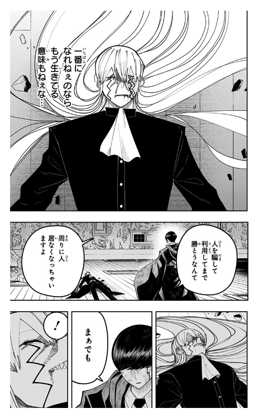 無邪気な淵源の息子・ドミナと対峙したマッシュ!! 神覚者の座を懸け、水魔法と筋力が激しくぶつかり合う!! 父に対する歪んだ承認欲求から、マッシュが最も大事にする友情や家族の絆を激しく憎み、滅ぼさんとするドミナ。その“怒り”が頂点に達した時、究極の魔法が顕現する!! 神にも等しい力を前にして、マッシュは…!? 世界の命運を懸けた神覚者最終試験は、驚愕の展開へ!!