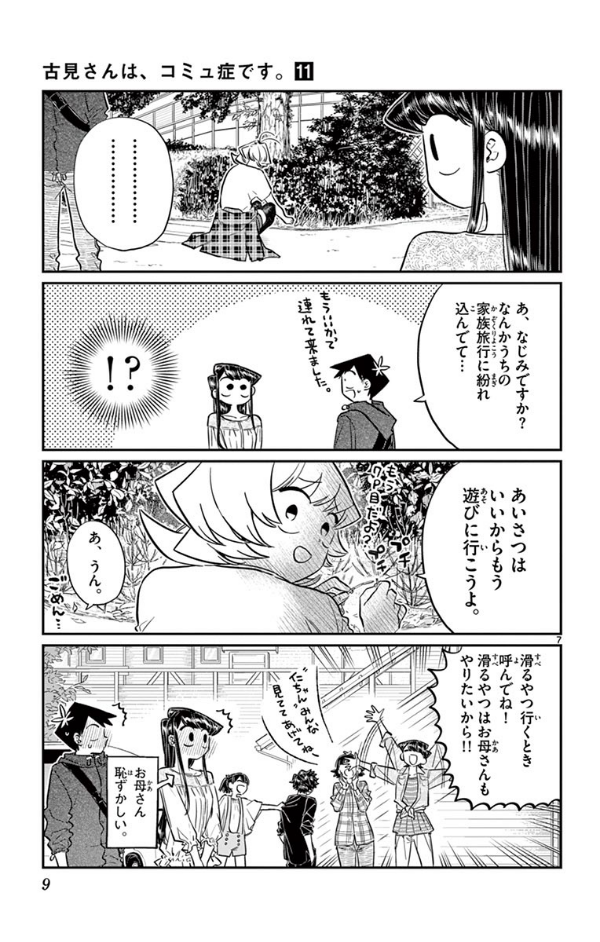 ゴールデンウィーク、古見さんは、家族旅行です。 そこには偶然、只野くんの家族となじみちゃんが。 皆で過ごせる嬉しい時間です。夜、星空を見に行こうと 只野くんと歩いていた時、突然の雨で二人は山小屋へ。 毛布は一枚、お互いが、寒くならいように譲り合い。 言葉にするのが難しかったり、照れたりする優しさが、 二人の”コミュニケーション”を紡いでいきます。