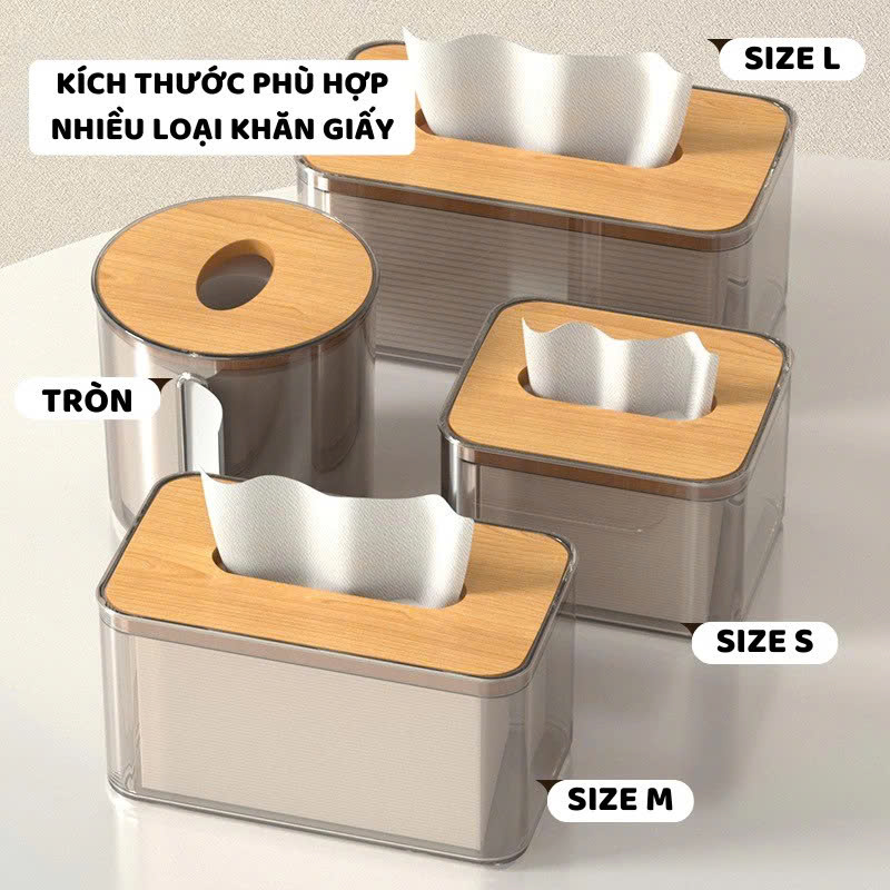 Hộp Đựng Giấy Ăn Khăn Giấy Nhựa MiKa Trong Suốt Nắp Gỗ Tre Tự Nhiên Màu Sắc Kiểu Dáng Phong Cách Bắc Âu