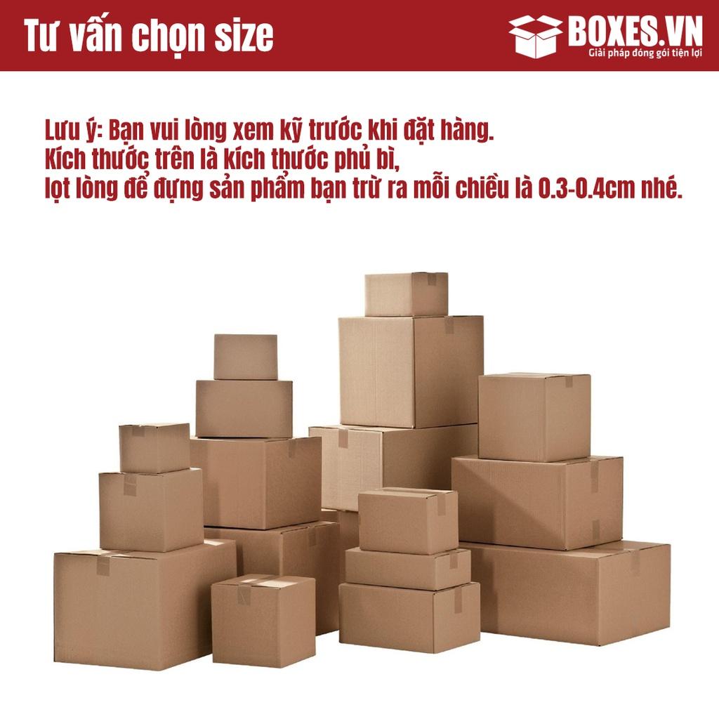 ---------------------QUY CHUẨN KĨ THUẬT---------------------------------------- Kích thước: 30x15x10 cm (kích thước phủ bì) Màu sắc: nâu nhạt Số lớp : 3 lớp - sóng E - dày 2mm (giúp tiết kiệm không gian lưu kho 50%