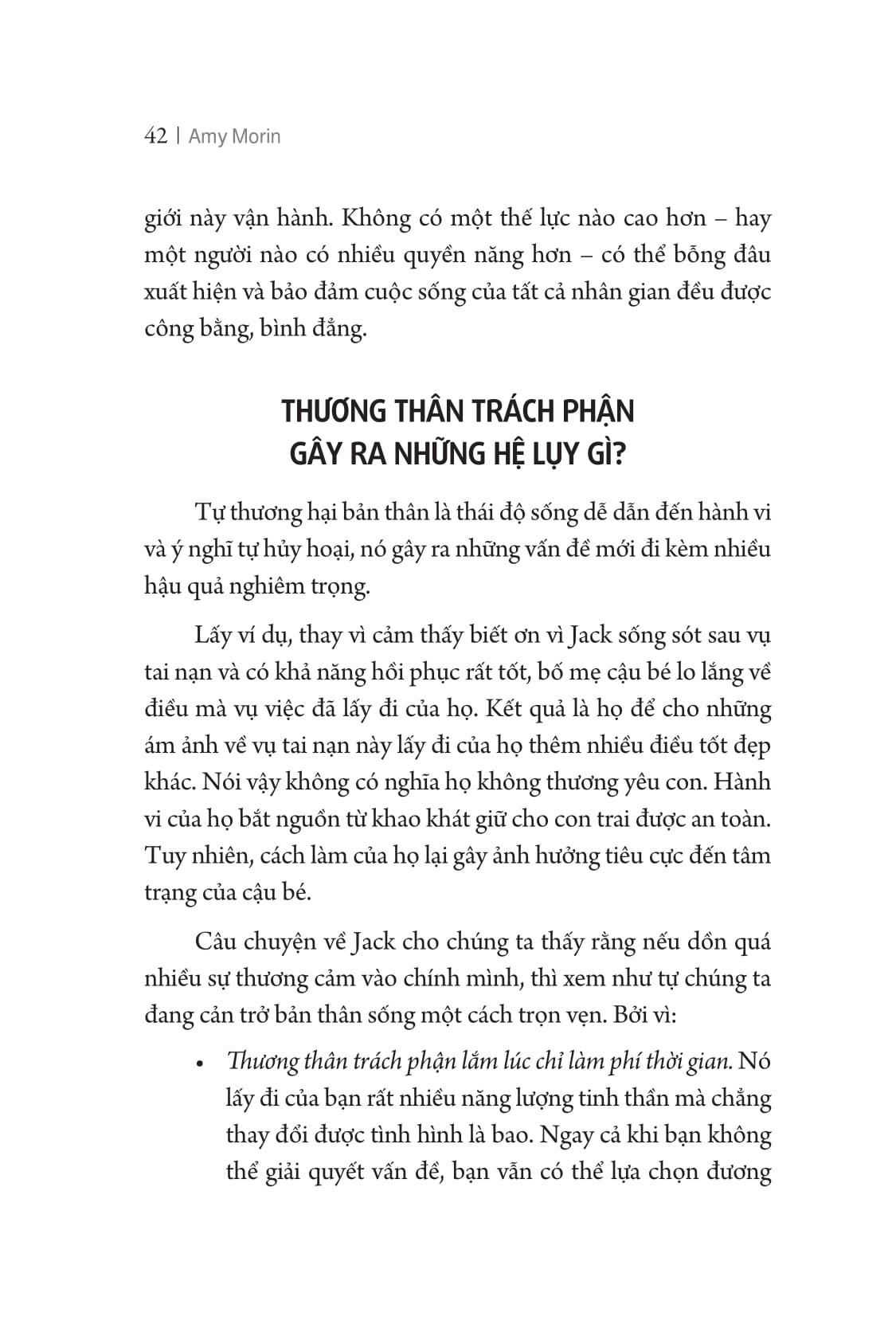 Đối mặt và nhận diện được 13 thói quen xấu này, bạn mới tránh được chúng và không sa vào những lối mòn tư duy như: đổ lỗi cho người khác và hoàn cảnh, thói ích kỷ, cho rằng bản thân là cái rốn của vũ trụ, quá thương thân và cho rằng thế gian này không công bằng với bạ Và chỉ khi nào tránh được những “cạm bẫy” tinh thần này, mỗi người chúng ta mới có thể thực sự tập trung vào việc phát huy và tăng cường những điểm mạnh vốn có của mình, mới có thể chú tâm vào hành trình lâu bền cải thiện bản thân, tăng cường sức mạnh tinh thần để chinh phục mọi thử thách trong cuộc sống .