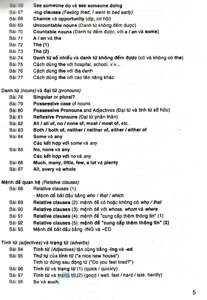 Ngữ pháp tiếng Anh lý thuyết và bài tập thực hành english grammar đề cập đến những vấn đề ngữ pháp thông dụng, cần thiết cho người học tiếng Anh ở mọi trình độ. Với