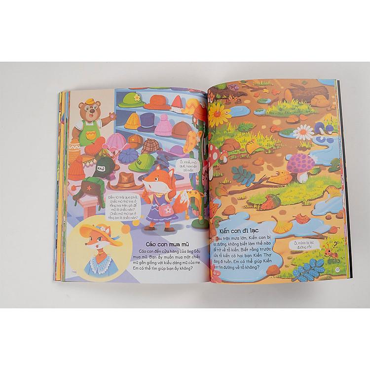 Hơn 140 hoạt động đa dạng cho bé không hề nhàm chán: tìm điểm giống và khác nhau, sắp xếp thứ tự, tìm đồ vật, học về chữ số, giải đố IQ,…0