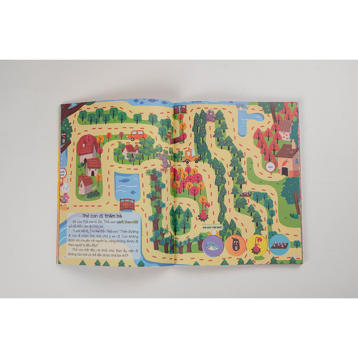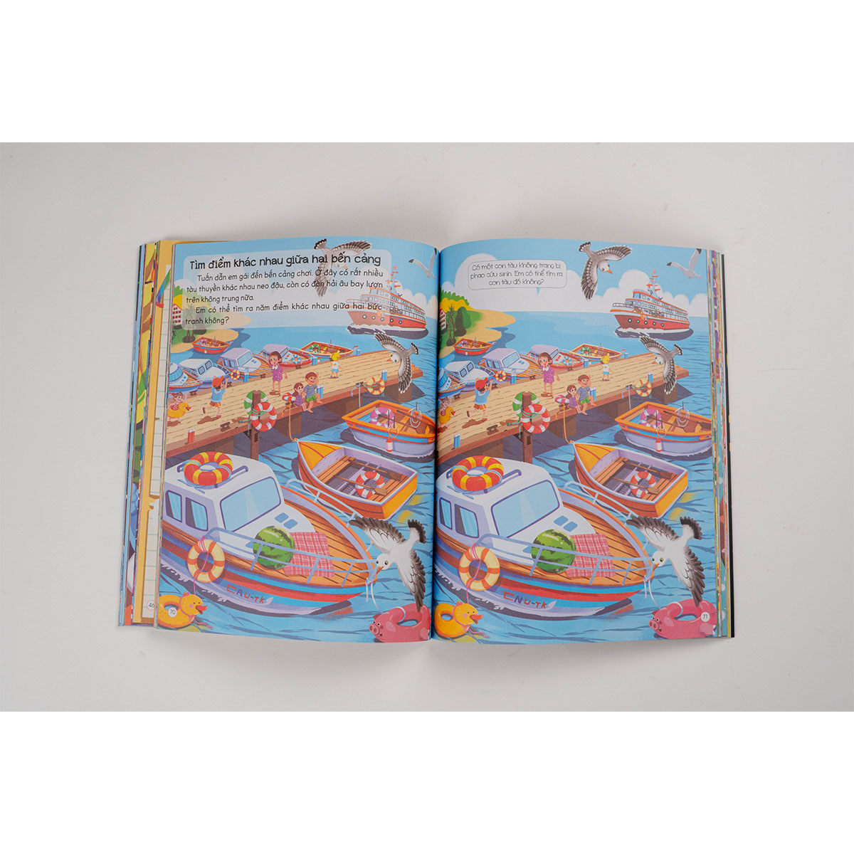 Hơn 140 hoạt động đa dạng cho bé không hề nhàm chán: tìm điểm giống và khác nhau, sắp xếp thứ tự, tìm đồ vật, học về chữ số, giải đố IQ,…