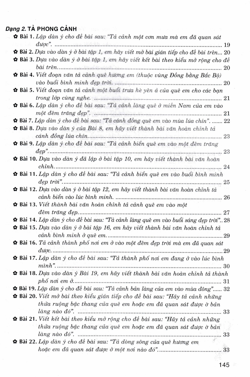 Trong cuốn sách này, tác giả giới thiệu 6 dạng bài làm văn khác nhau để các em luyện tập: