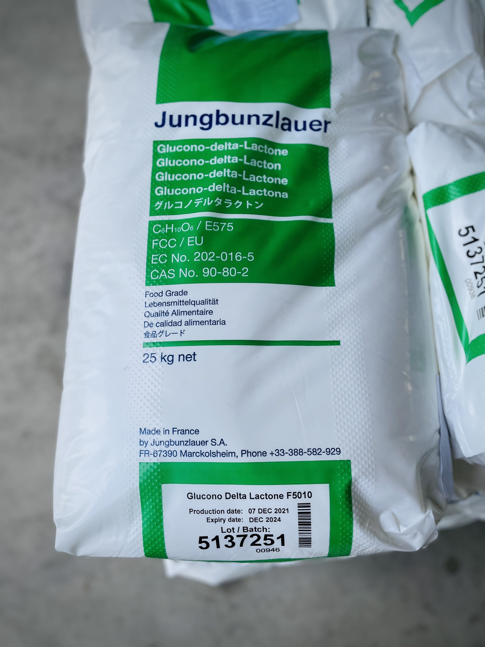 - Tên sản phẩm: Phụ gia thực phẩm Glucono Delta Lactone E575.