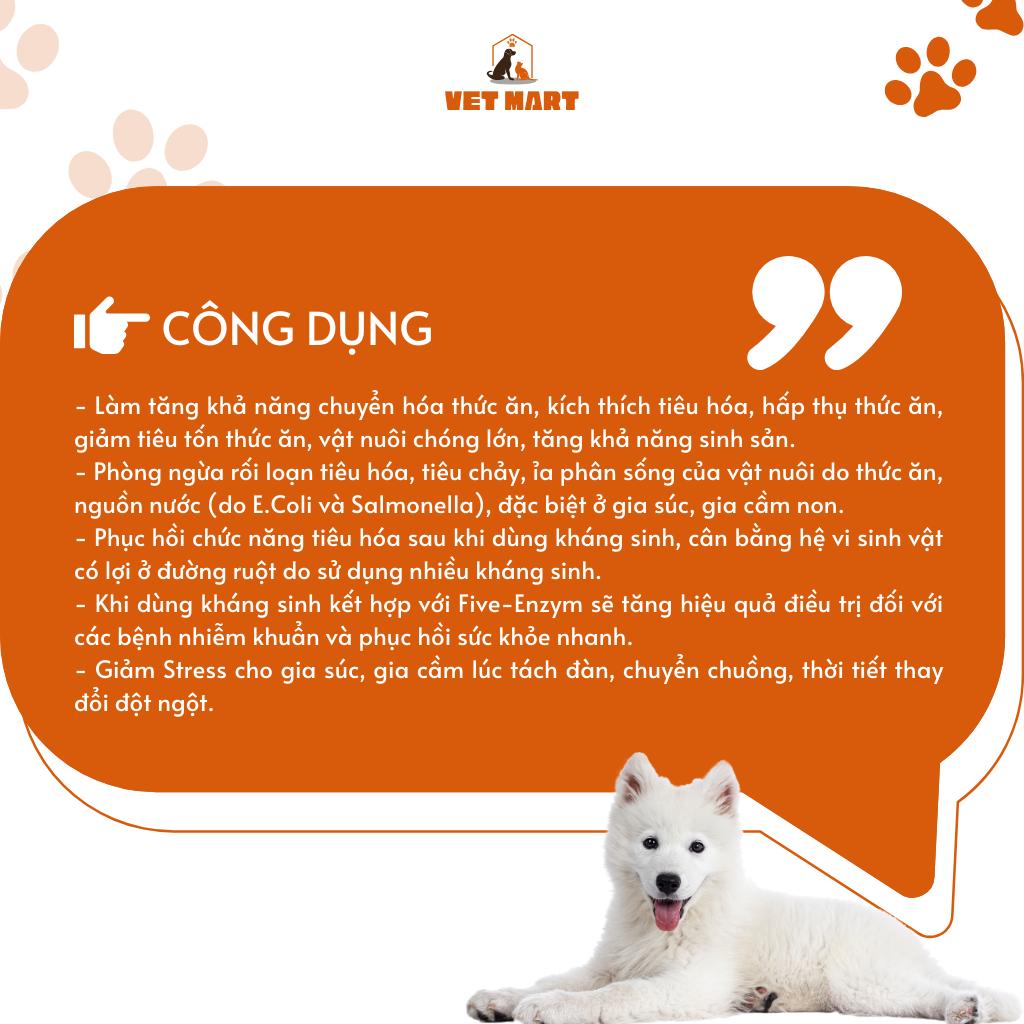 -1kg pha vào 400 lít nước uống hoặc trộn với 600kg thức ăn dùng cho 5.000kgP/ngày.