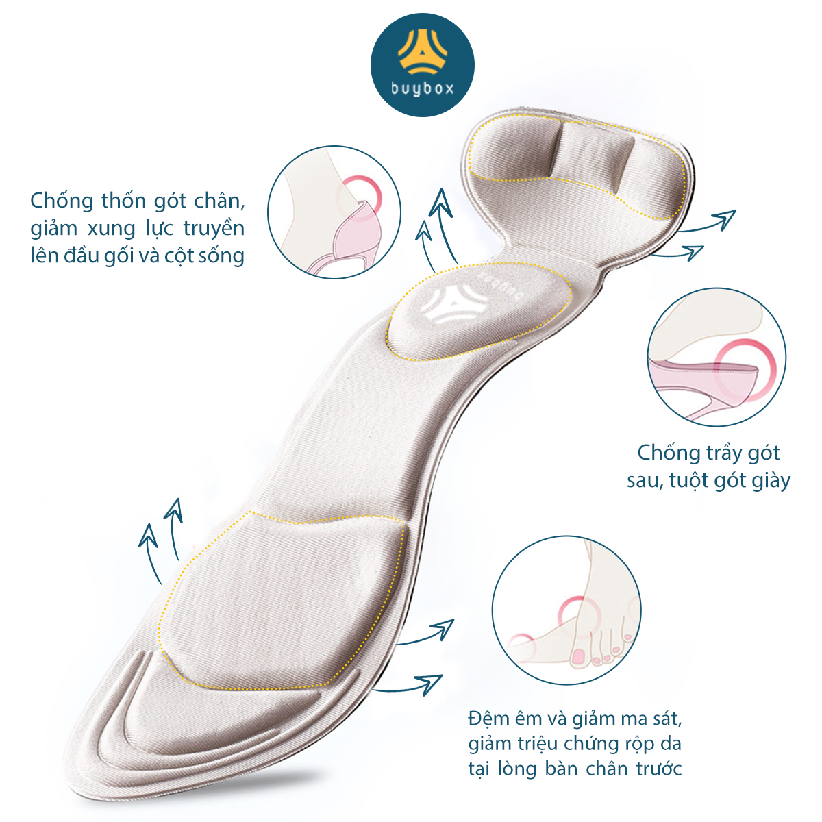 CÔNG DỤNG NỔI BẬT Lót giày nguyên bàn chân đa năng buybox là sự kết hợp giữa lót giày và lót giảm size giày. Lót mũi giày đệm êm ngón chân cũng có công dụng