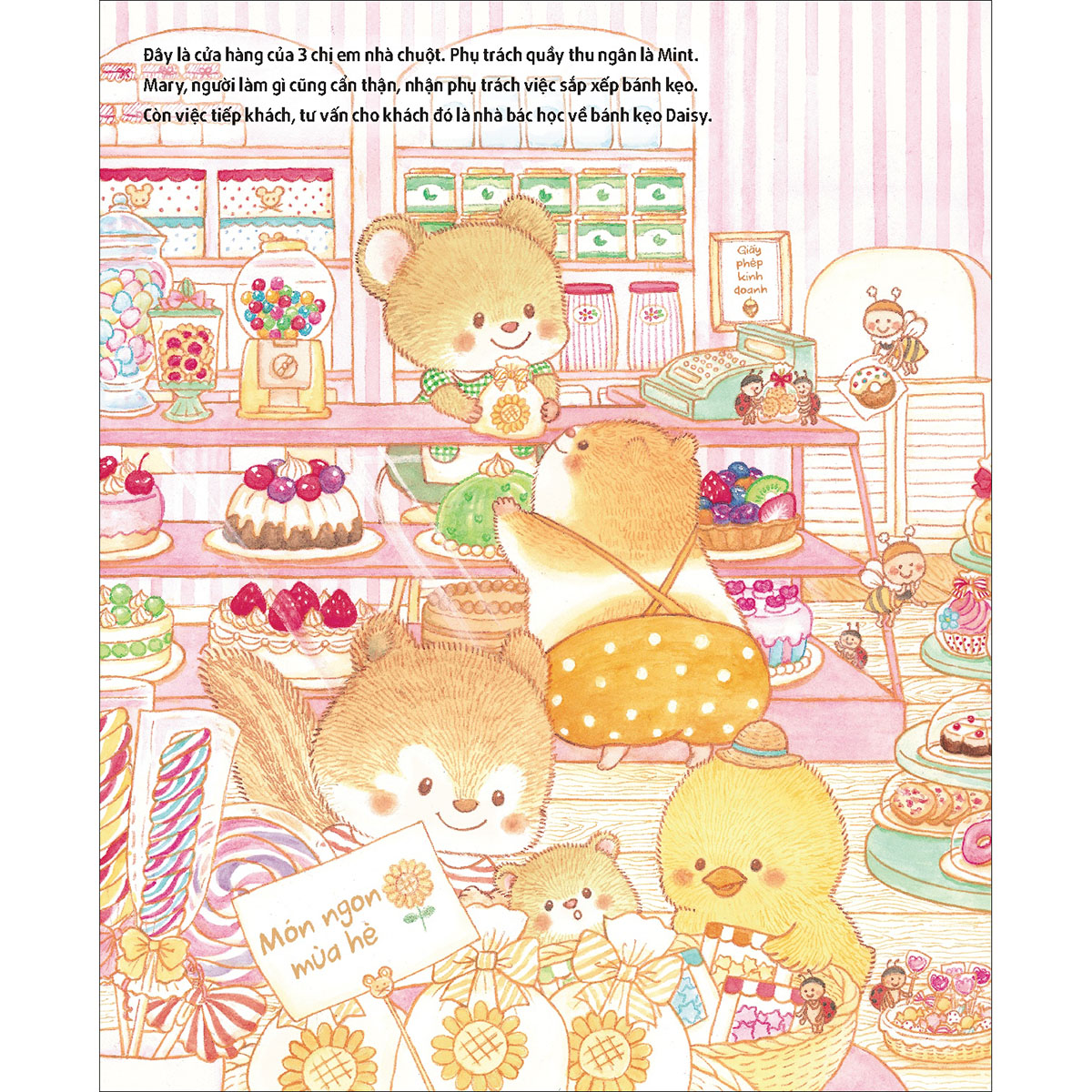 Hình ảnh sinh động: Cuốn sách được minh họa bằng những hình ảnh màu sắc tươi tắn, bắt mắt, giúp trẻ dễ dàng hình dung ra thế giới bánh kẹo đầy màu sắc.