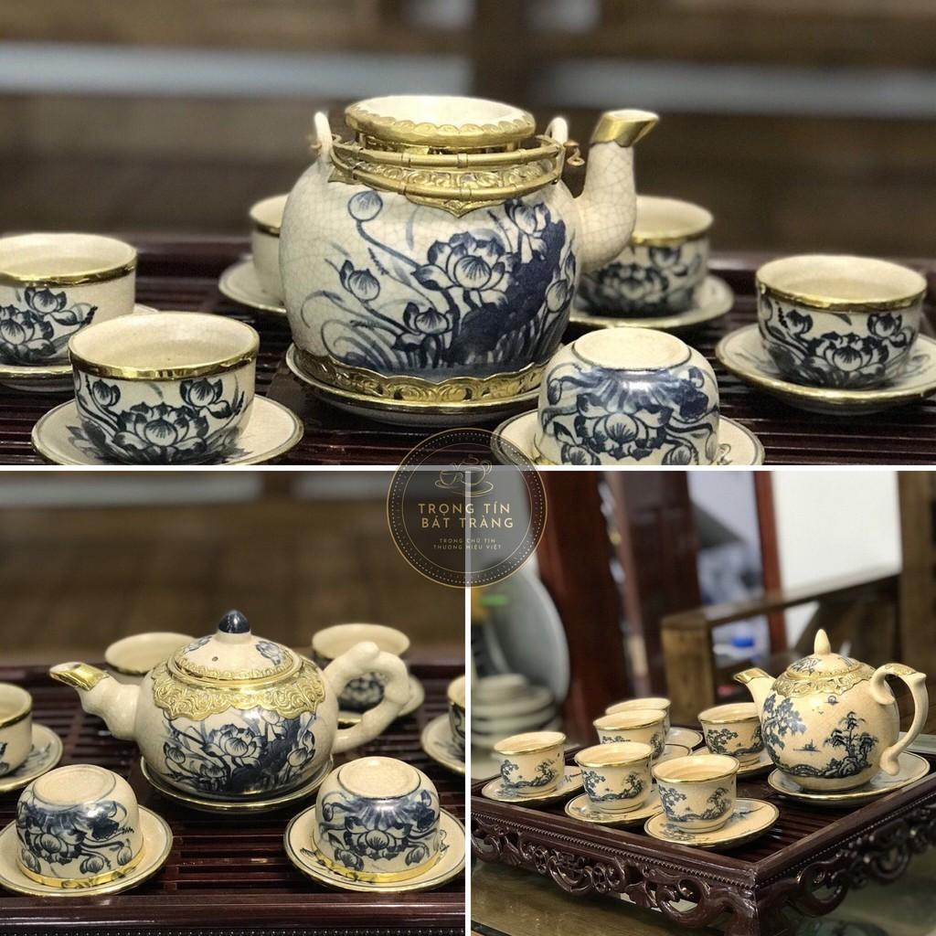 Bộ ấm chén Bát Tràng - Sản phẩm bao gồm: 1 Ấm, 6 chén, 7 đĩa kê - dung tích ấm 350ml - Chất liệu: Gốm men lam Bát Tràng bọc đồng. - Bộ ấm