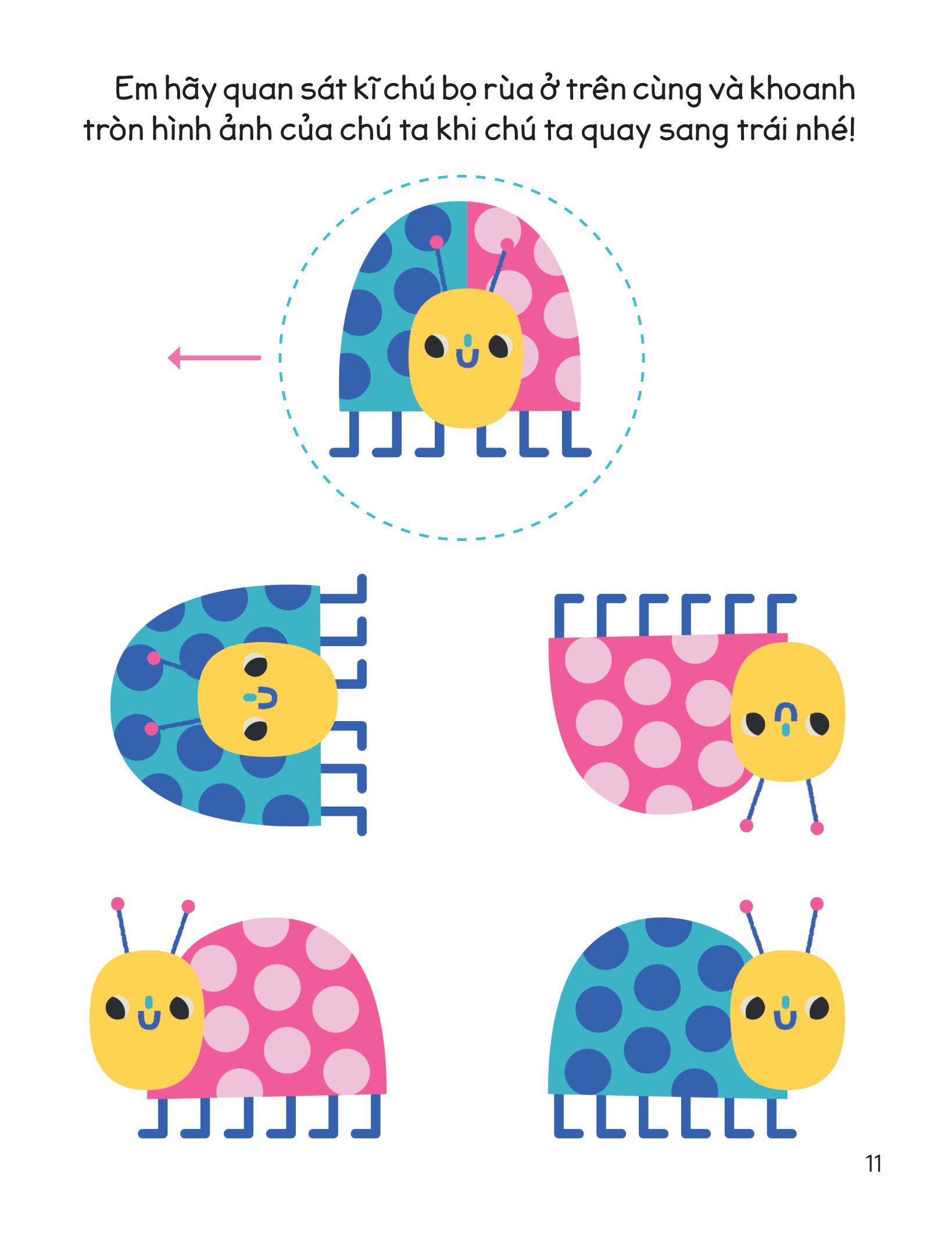 Đồng thời, các hoạt động trong sách cũng kích thích trí não của em, giúp em phát triển nhận thức thị giác, kỹ năng vận động tinh và sự phối hợp tay-mắt đấy.