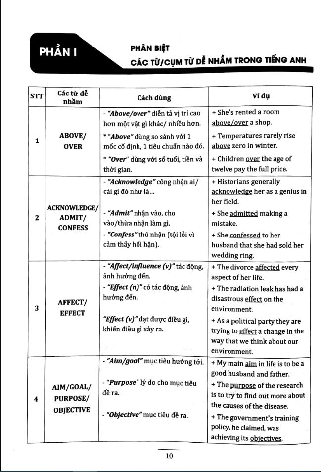 Cuốn sách này tập trung vào những phạm trù khó nhất trong tiếng Anh (từ cùng trường nghĩa, từ đồng nghĩa, từ dễ gây nhầm, mệnh đề, những phần ngoại lệ trong ngữ pháp), đặc