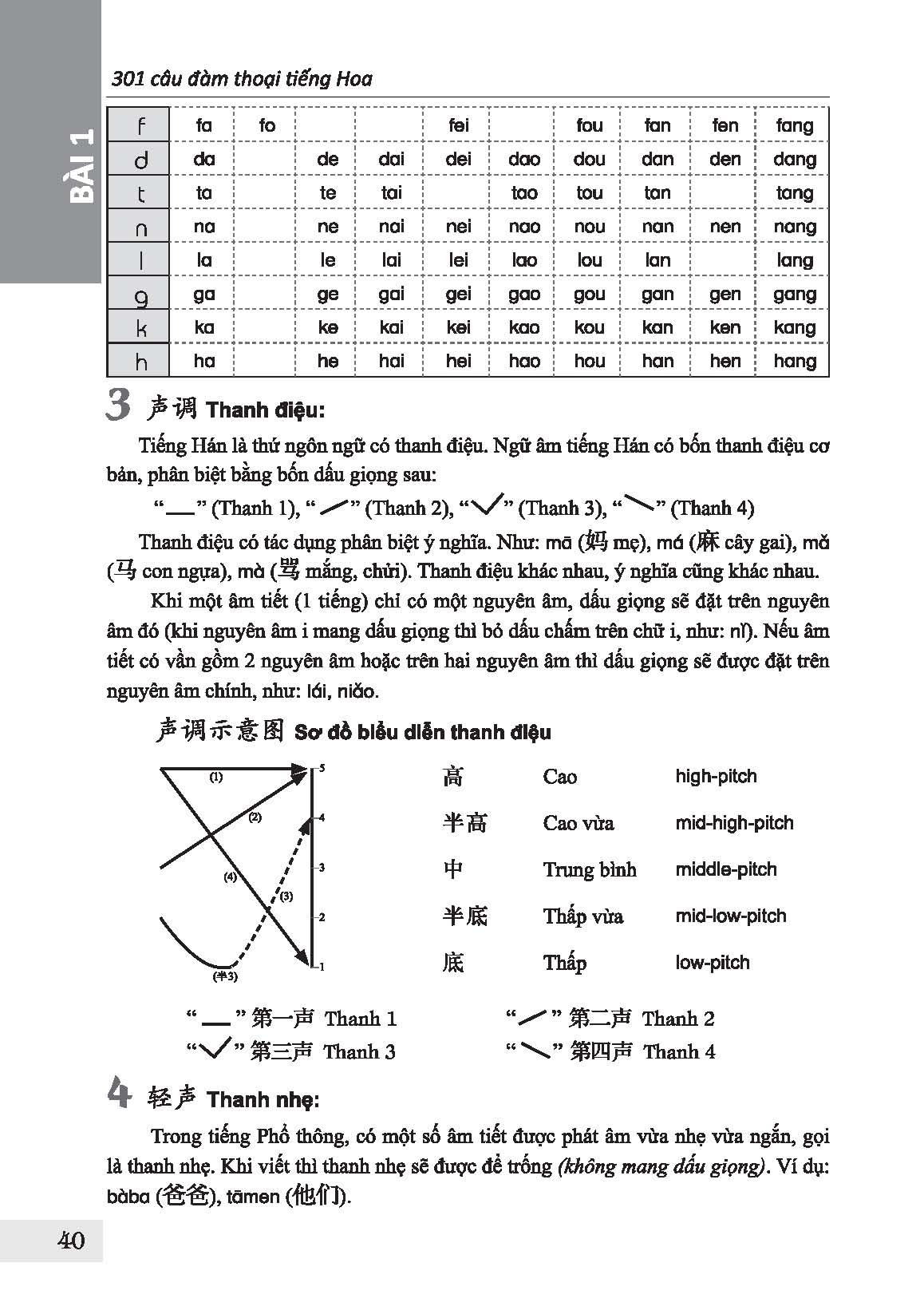 Hiện nay rất nhiều khoa, trường, trung tâm ngoại ngữ sử dụng cuốn “301 câu đàm thoại tiếng Hoa” của Học viện Ngôn ngữ Bắc Kinh Trung Quốc làm tài liệu dạy và học tiếng Hoa giai đoạn cơ sở. Sự lựa chọn này là hoàn toàn chính xác. Cuốn “301 câu đàm thoại tiếng Hoa” tuy chỉ có 40 bài và bài ôn tập, nhưng đã đề cập đến nhiều đề tài giao tiếp thông thường trong đời sống. Ngôn ngữ trong các bài ngắn gọn, trong sáng, mang tính khẩu ngữ rất cao. Hệ thống các điểm ngữ pháp tập trung vào các đặc điểm ngữ pháp tiếng Hoa, hệ thống bài tập đa dạng phong phú, dễ hiểu, dễ luyện tập.