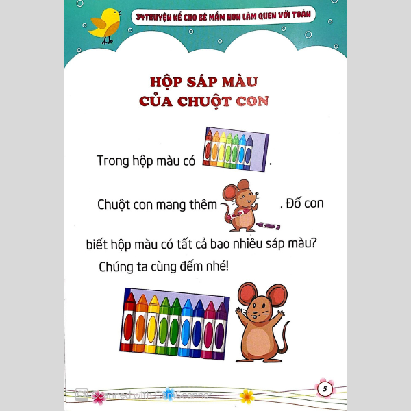 Qua những câu chuyện với hình ảnh sinh động giúp trẻ có hứng thú với việc thực hiện các phép toán và tăng khả năng khả năng tư duy của trẻ. Cuốn sách " 34 truyện kể cho bé mầm non làm quen với toán" sẽ giúp cho các bé thực hiện được các phép toán đơn giản trước khi bước vào lớp
