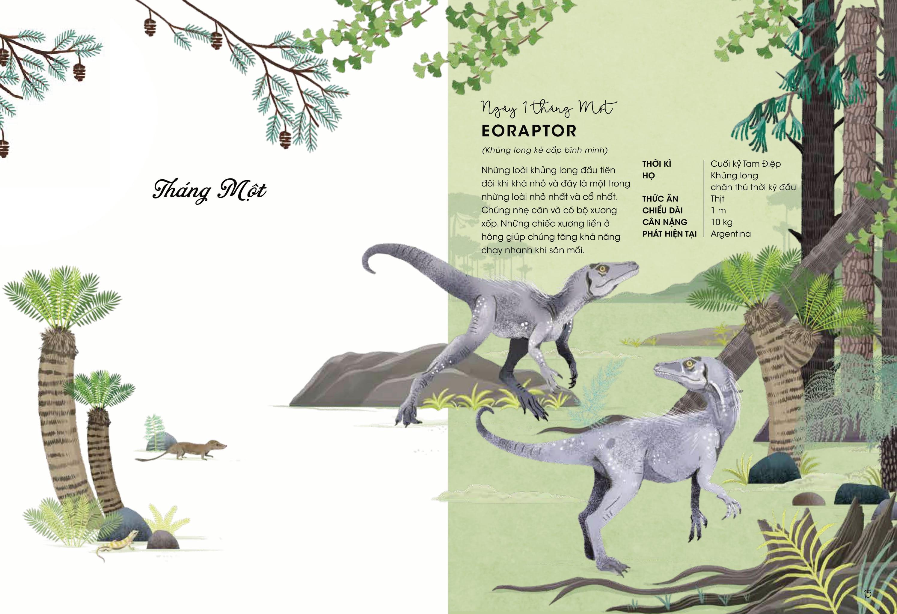 Mua tại Tiktok365 Ngày Khủng Long Cuốn sách ‘365 ngày khủng long’ mời bạn cùng du hành vào một thế giới cổ xưa và kỳ lạ. Trong cuộc gặp gỡ khó quên kéo dài suốt 365 ngày này, bạn sẽ được gặp đủ các loài khủng long, từ hiền lành tới hung dữ, từ nhỏ bằng bàn tay cho tới lớn như tòa nhà. Bạn sẽ thấy những cái tên quen thuộc và lạ lẫm, cùng với những loài mới được phát hiện, tất cả đều trở nên sống động với những hình ảnh minh họa tuyệt đẹp và các thông tin hấp dẫn.