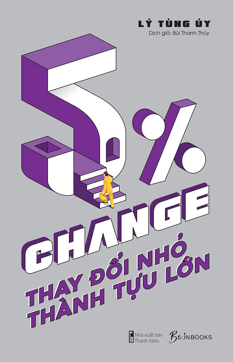 - Cuốn sách được trang Outlook Weekly của Tân Hoa Xã đề xuất năm 2023 Nếu bạn là kiểu người “suy tính rất nhiều nhưng không thể hành động”, hoặc bạn đã nghe không biết bao nhiêu lời khuyên đắt giá nhưng vẫn không thể sống tốt trên đời, có lẽ bạn đã mắc một sai lầm kinh điển: bạn muốn thay đổi cuộc sống của m.ình 100% ngay lập tức. Lý Tùng Úy - bác sĩ tâm lý đang “nổi đình nổi đám” trên mạng xã hội tại Trung Quốc có một cách tiếp cận khác: dù cuộc sống bạn có đang tệ thế nào, bạn hãy cứ giữ nguyên 95% bản thân m.ình như hiện tại. Phần lớn những chuyện xui xẻo trên đời không phải lỗi của bạn, mà do bạn đang ở sai chỗ, sai thời điểm, hoặc nhận định sai về chính m.ình mà thôi. Bạn chỉ cần thay đổi 5% then chốt là được rồi. Để chứng minh hiệu quả của luận điểm này, bác sĩ Lý đã mở hộp thư tư vấn tâm lý trên Internet, và chọn ra những trường hợp tiêu biểu nhất để phản hồi và ghi chép lại trong cuốn sách: “5% CHANGE - Thay đổi nhỏ, thành tựu lớn”. Cuốn sách là tập hợp 44 lá thư của độc giả nhờ bác sĩ Lý giải quyết những khúc mắc về cái tôi, gia đình, công việc và các mối quan hệ xã hội. Đối với mỗi trường hợp, bác sĩ Lý đều đặt thêm những câu hỏi cho độc giả tự khám phá vấn đề sâu hơn, và gợi ý độc giả thử một hành động nhỏ mà họ chưa từng thử rồi viết thư phản hồi lại cho anh.