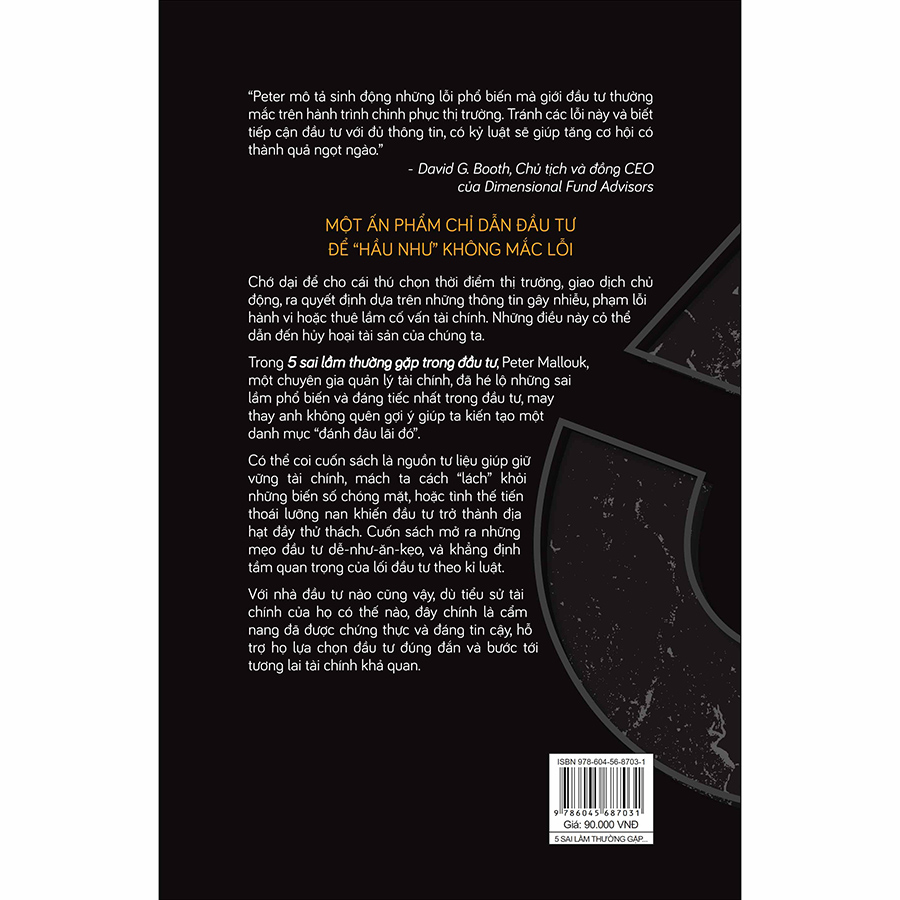 5 sai lầm thường gặp trong đầu tư chỉ ra cho các nhà đầu tư cách tránh xa hố bẫy, và áp dụng những chiến thuật nhằm cải thiện đáng kể hiệu quả đầu tư, giảm thiểu áp lực và làm tăng khả năng đạt tới mục tiêu đầu tư, thậm chí cải thiện là cả chất lượng cuộc sống.