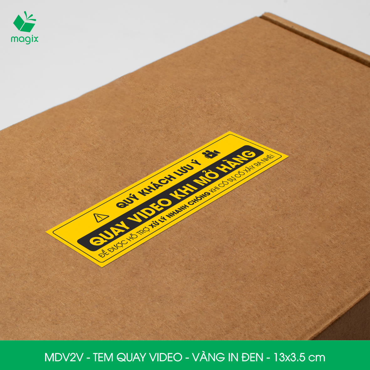 ✨50 Tem chú ý quay video trước khi mở hàng, decal dán hộp - 13x3,5 cm - Vàng in đen - MDV2V