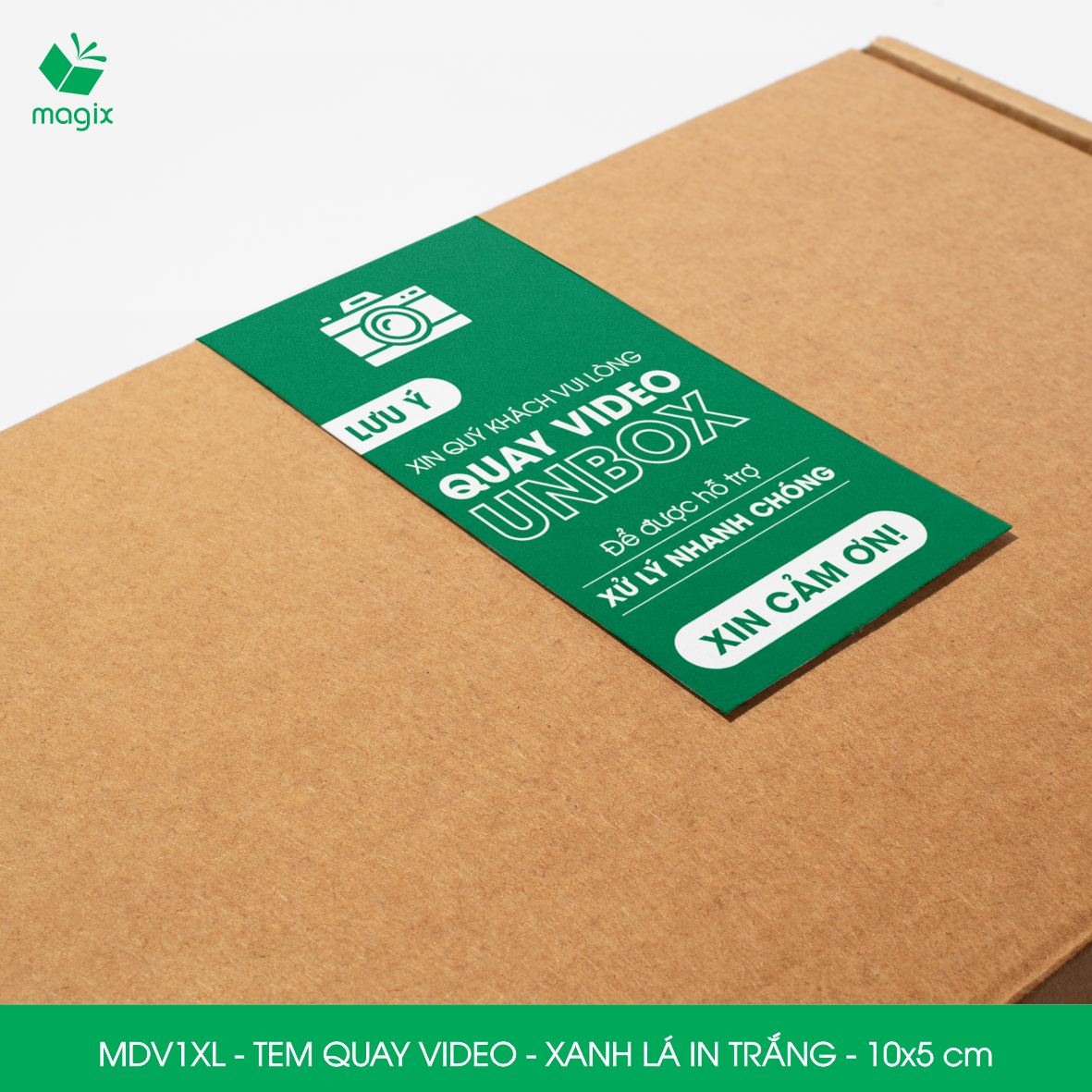 ✨500 Tem chú ý quay video trước khi mở hàng, decal dán hộp - 10x5 cm - Xanh lá in trắng - MDV1XL