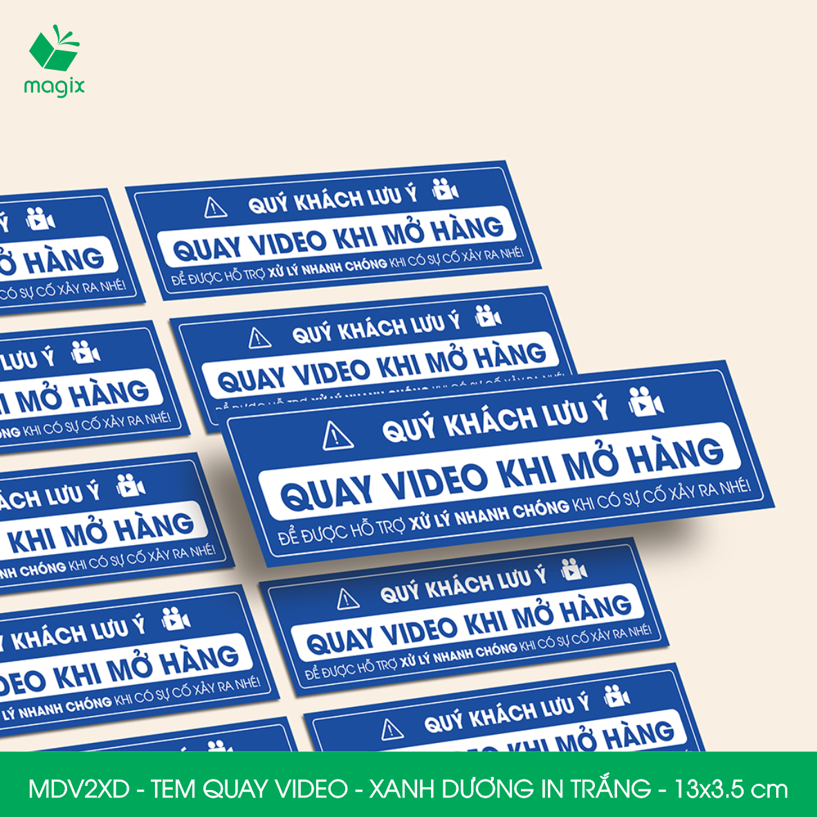 ✨500 Tem chú ý quay video trước khi mở hàng, decal dán hộp - 13x3,5 cm - Xanh dương in trắng - MDV2XD