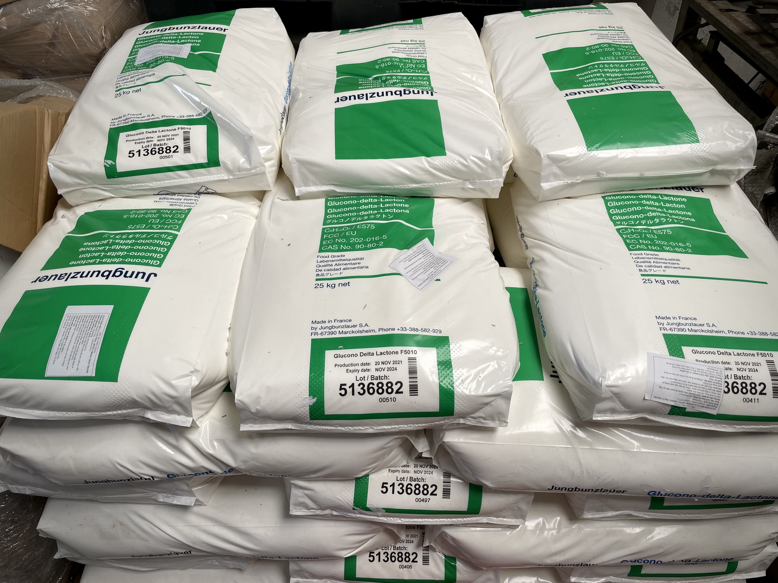 - Tên sản phẩm: Phụ gia thực phẩm Glucono Delta Lactone E575.