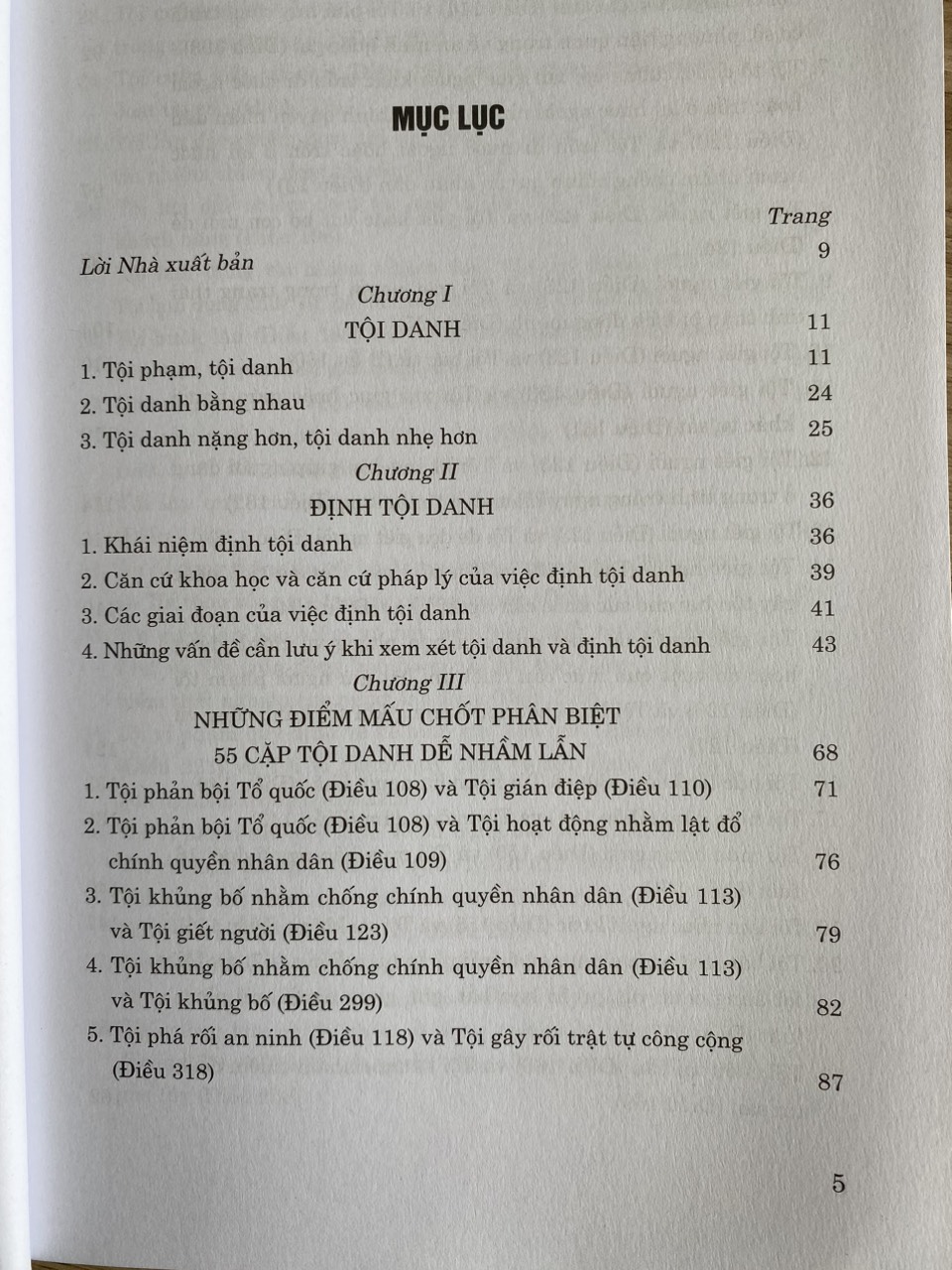 Một số vụ án hình sự xảy ra gần đây cho thấy, trong thực tiễn còn có những ý kiến đánh giá khác nhau, ngay cả giữa các luật sư trong việc xác định tội danh đối với chủ thể phạm tội, ví dụ giữa tội giết người và tội giết người trong trạng thái tinh thần bị kích động mạnh; tội giết người và tội bức tử; tội bức tử và tội hành hạ người khá Thực tế, có những tội danh bằng nhau, tội danh nặng hơn và tội danh nhẹ hơn, trong đó có những cặp tội danh rất dễ nhầm lẫn. Đối với cán bộ làm công tác thực tiễn và hành nghề luật, việc xác định đúng tội danh cũng như xử lý đúng người, đúng pháp luật mang ý nghĩa rất quan trọng để vụ án hình sự được giải quyết khách quan, toàn diện. Cuốn sách 55 CẶP TỘI DANH DỄ NHẰM LẪN TRONG BỘ LUẬT HÌNH SỰ (hiện hành) (Xuất bản lần thứ ba có sửa chữa, bổ sung) do PGS.TS. Trịnh Tiến Việt, Phó Chủ nhiệm Khoa Luật, Đại học Quốc gia Hà Nội biên soạn (vừa được tái bản có sửa chữa, bổ sung) sẽ giúp độc giả tìm ra những điểm mấu chốt mang tính bản chất để phân biệt tội danh này với tội danh khác, xác định được các tội danh bằng nhau, tội danh nặng hơn và tội danh nhẹ hơn, đồng thời cung cấp phương pháp học - hiểu - nhớ tội danh. Trong lần tái bản này, nội dung sách được tác giả rà soát, cập nhật văn bản và thay một số cặp tội danh hay nhầm lẫn gần đây cho một số cặp khác mang tính ổn định để phục vụ, đáp ứng thực tiễn áp dụng pháp luật hình sự, đồng thời cung cấp thêm nguồn tài liệu tham khảo cho những người đang hoạt động thực tiễn liên quan đến luật hình sự và bổ sung những kiến thức hữu ích cho sinh viên ngành luật.