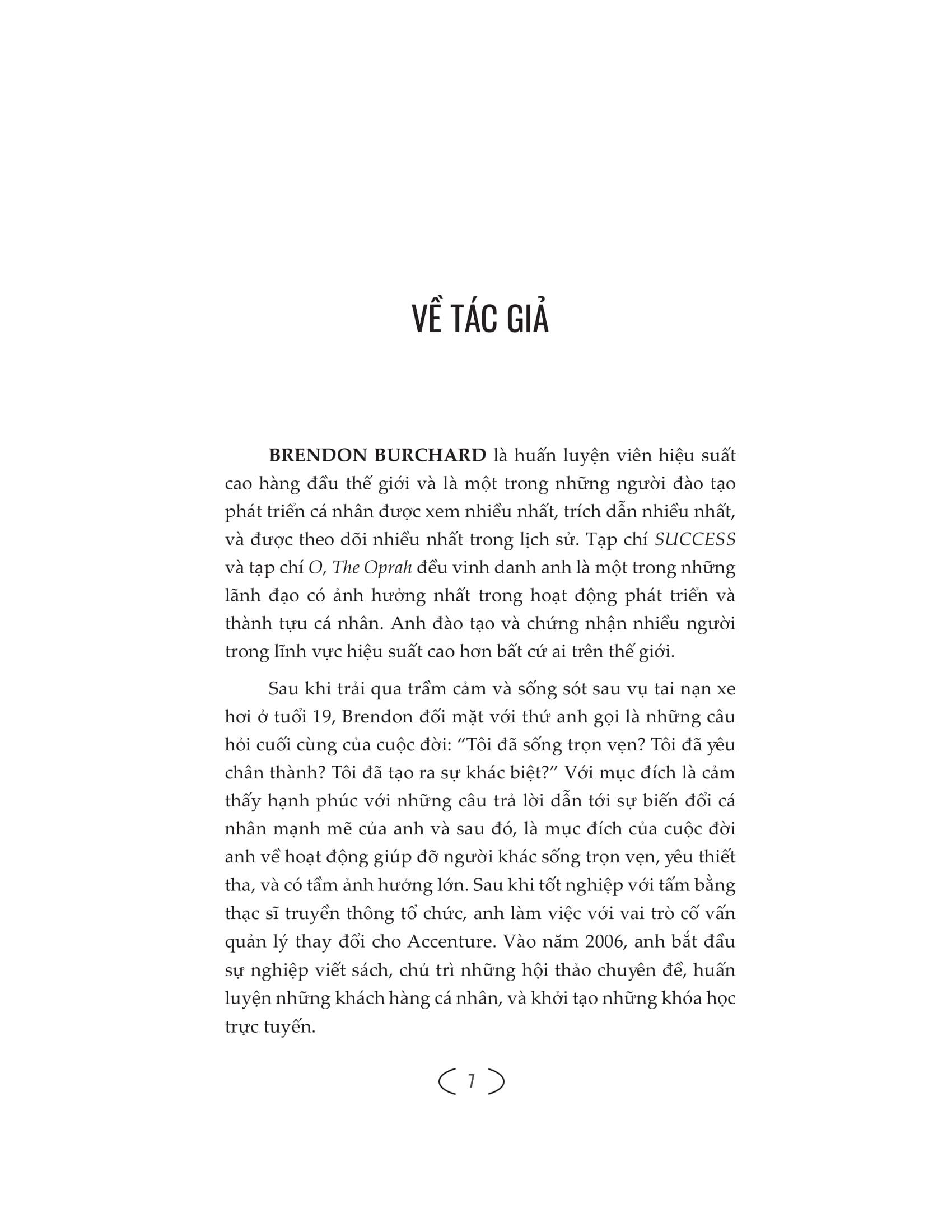 Mua tại TiktokTất cả chúng ta đều muốn có hiệu suất cao trong mọi lĩnh vực cuộc sống, từ học tập, làm việc, đến mở rộng mối quan hệ hay xử lý các vấn đề cá nhân. Nhưng ta phải làm những gì, phải hình thành những thói quen nào để đạt được thành công lâu dài và hạnh phúc bất kể tuổi tác, nghề nghiệp, ưu điểm hay tính cách của ta? Brendon Burchard – một trong những nhà huấn luyện uy tín nhất thế giới hiện nay về vấn đề phát triển bản thân đã chỉ ra 6 thói quen cần có để tối ưu hiệu suất làm việc. Đó là: