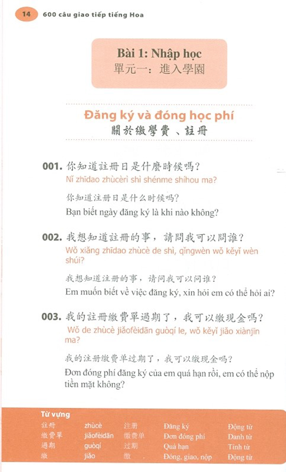 Giáo trình tiếng Trung giao tiếp tổng hợp dành cho người Việt Nam Cuốn sách có 15 bài, mỗi bài gồm: 1. Câu trọng điểm: Đưa ra trong bảng ở đầu tiên của mỗi bài,