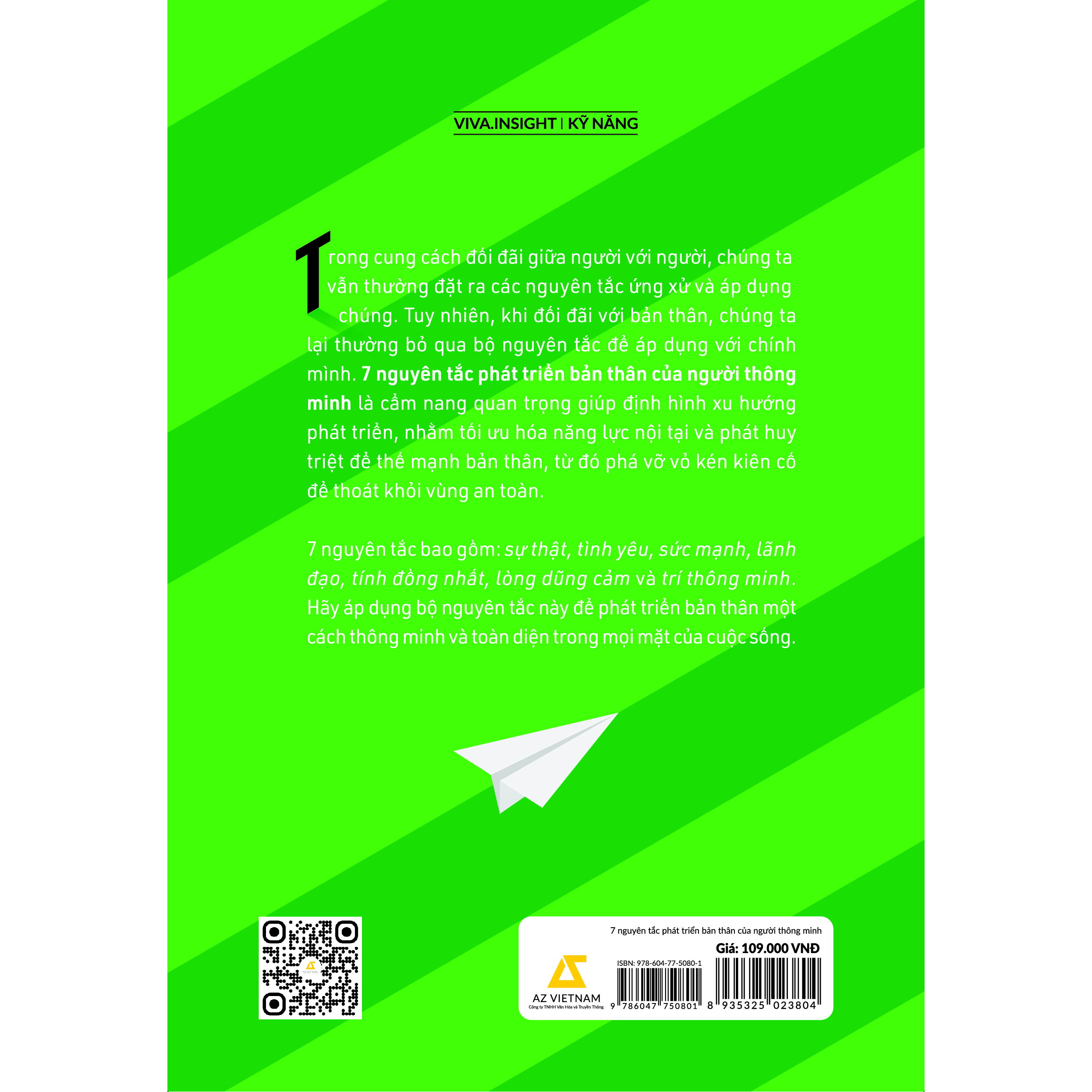 Mua tại TiktokGiới thiệu Trong cung cách đối đãi giữa người với người, chúng ta vẫn thường đặt ra các nguyên tắc ứng xử và áp dụng chúng. Tuy nhiên, khi đối đãi với bản thân, chúng ta lại thường bỏ qua bộ nguyên tắc để áp dụng với chính mình. “7 nguyên tắc phát triển bản thân của người thông minh” là cẩm nang quan trọng giúp định hình xu hướng phát triển, nhằm tối ưu hoá năng lực nội tại và phát huy triệt để thế mạnh bản thân, từ đó phá vỡ vỏ kén kiên cố để thoát khỏi vùng an toàn.