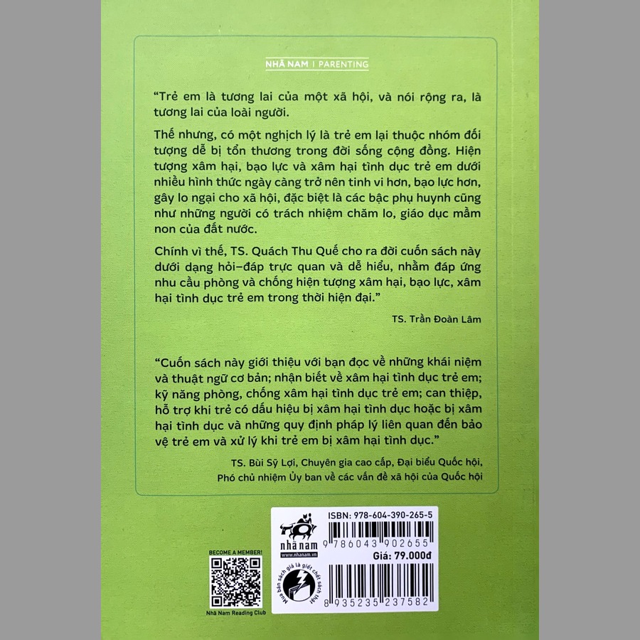• Chính vì thế, TS. Quách Thu Quế cho ra đời cuốn sách này dưới dạng hỏi – đáp trực quan và dễ hiểu, nhằm đáp ứng nhu cầu phòng và chống hiện tượng xâm hại, bạo lực, xâm hại tình dục trẻ em trong thời hiện đại. "