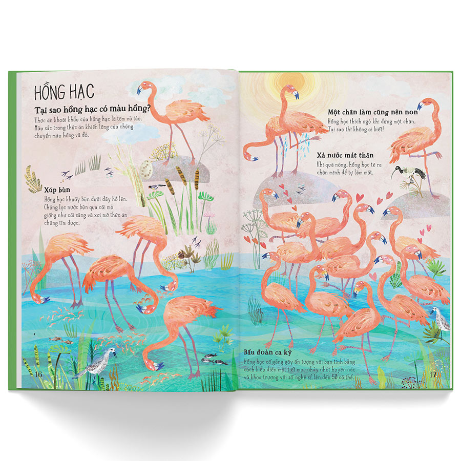 A LÊ HẤP! THẾ GIỚI CHIM Tại sao hồng hạc có màu hồng? Vẹt có biết nói không? Vì sao trứng chim có đầu nhọn? Các bí mật thú vị về loài vật biết bay đang chờ được bật mí. Đừng quên chơi trò tìm hình nhé. Bạn có bỏ sót quả trứng nào không? A lê hấp! Thế giới chim sẽ mở ra trước mắt bạn vương quốc kỳ thù của các loài chim sặc sỡ, bóng bẩy nhưng cũng không kém phần ngờ nghệch. Hãy nhảy ngay vào cuốn sách để lật mở những sự thật lý thú về cách các loài chim sinh tồn và khoe mẽ trong thế giới tự nhiên.