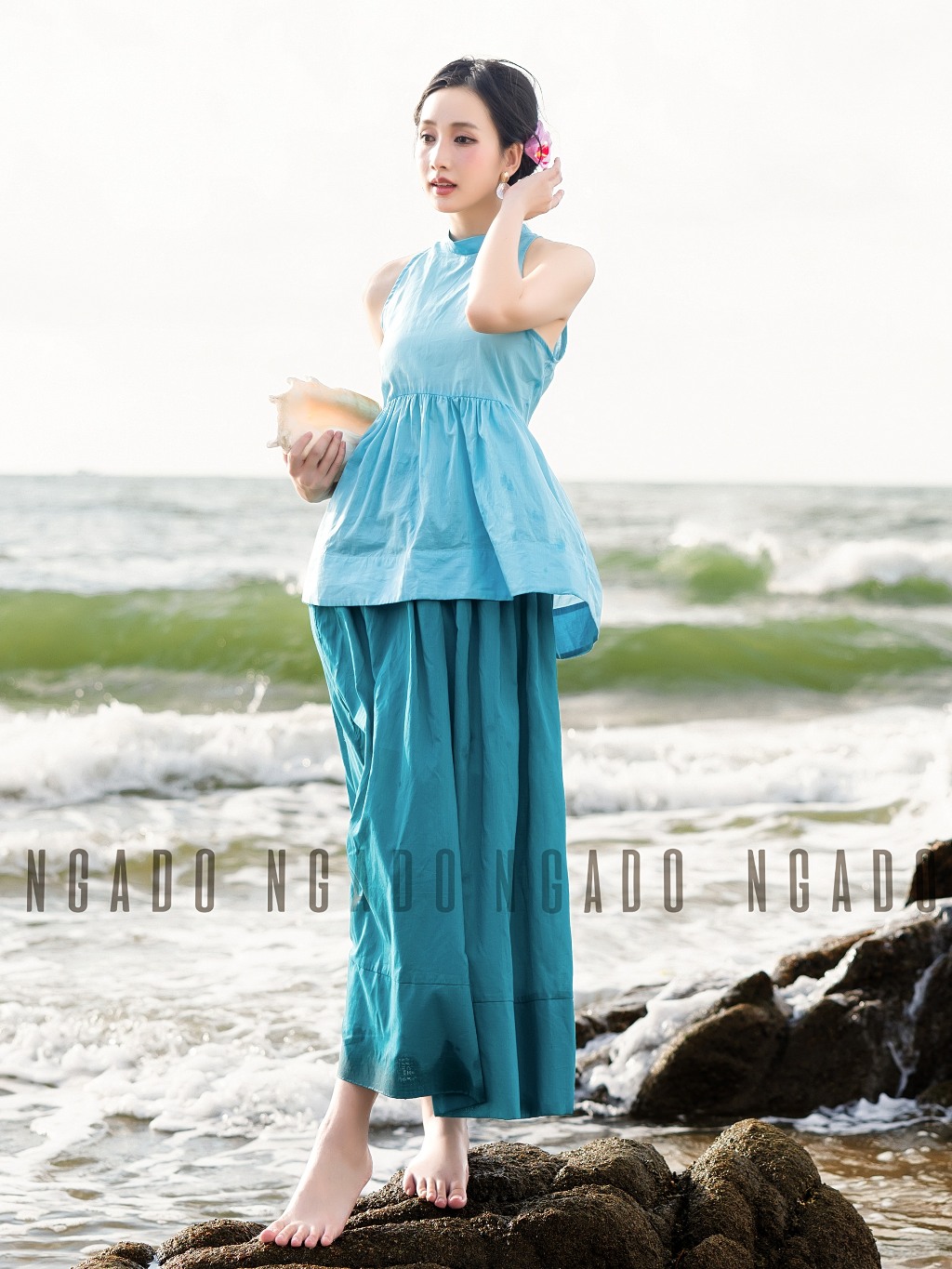 ✨Áo yếm xanh ngọc NGADO , Áo kiểu nữ , Áo thiết kế