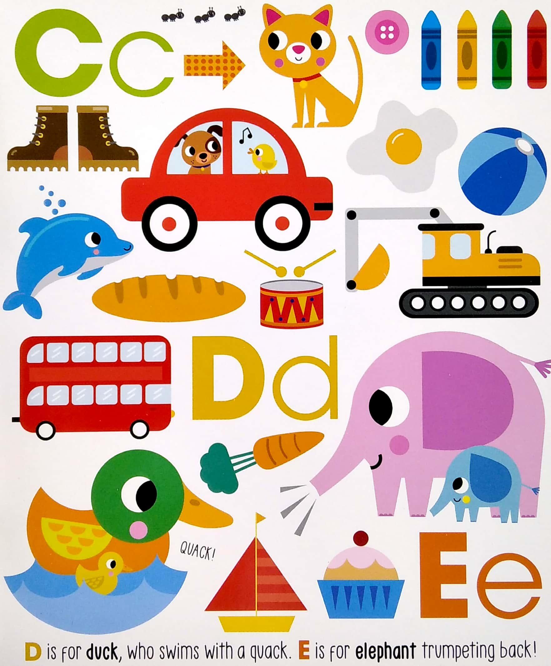 This fun book offers a fun introduction to the alphabet for young children. Each busy page is packed with ABC things for little ones to find, keeping them entertained for hours. There’s a sweet rhyme to read, plus a soft silicone cover to create a tactile experience for children. A FUN ABC BOOK WITH A SILICONE COVER