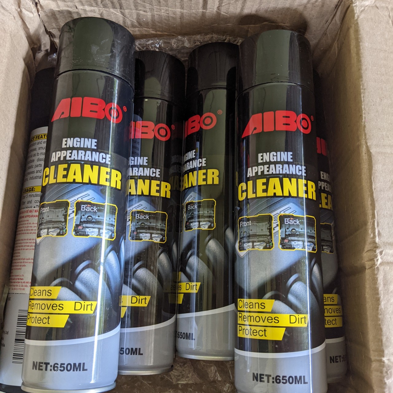 - Dung dịch vệ sinh động cơ khoang máy AIBO - 650ML được đặc chế từ chất có hoạt tính bề mặt đặc biệt bởi các chuyên gia hàng đầu, không những có khả năng làm sạch vết bẩn một cách đáng kinh ngạc, sản phẩm còn giúp tạo một lớp màng bảo vệ trên bề mặt động cơ, nhờ đó giúp chống rỉ, chống nóng cho động cơ, giúp xe hoạt động mạnh mẽ và hiệu quả hơn. Công dụng của Dung dịch vệ sinh động cơ khoang máy AIBO - 650ML Sản phẩm được đặc chế theo công thức đặc biệt, có khả năng loại bỏ nhanh chóng và hiệu quả bất kì vết bẩn nào bám trên bề mặt động cơ. Loại bỏ hiệu quả các vết bẩn mà không gây nên bất kì tổn hại nào trên bề mặt động cơ khi sử dụng. Tạo lớp màng bảo vệ trên bề mặt động cơ xe của bạn, nhờ đó giúp hạn chế những tác động từ môi trường, đồng thời chống rỉ cho động cơ hiệu quả. Có hiệu quả có thể loại bỏ bất kỳ vết bẩn, vết dơ và các chất bóng nhờn trên bề mặt của động cơ mà không cần sơn mài làm tổn hại đến phụ kiện. Tính năng chống rỉ và làm mát động cơ để động cơ máy làm việc hiệu quả hơn. Hướng dẫn sử dụng và bảo quản Dung dịch vệ sinh động cơ khoang máy AIBO - 650ML