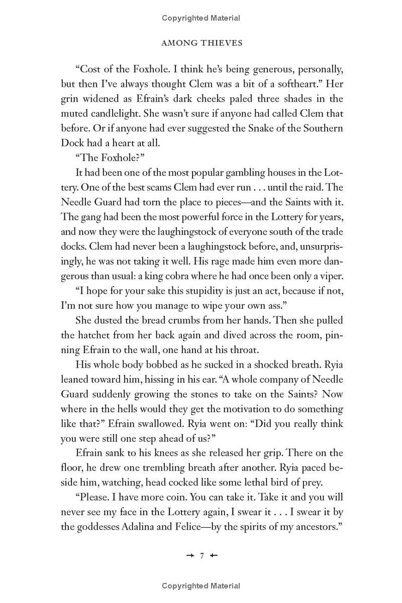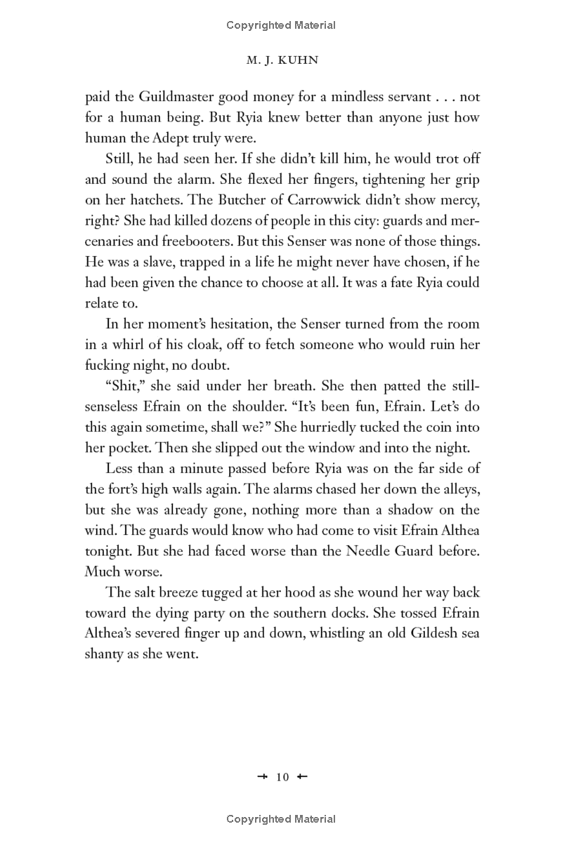 One last impossible job is all that stands between Ryia and her freedom - but even the Butcher can't do it alone. She teams up with the Saints, a crew of uniquely skilled miscreants, smugglers and thieves, to carry off a death-defying heist into the most tightly guarded island in the kingdoms - the Guildmaster's stronghold.