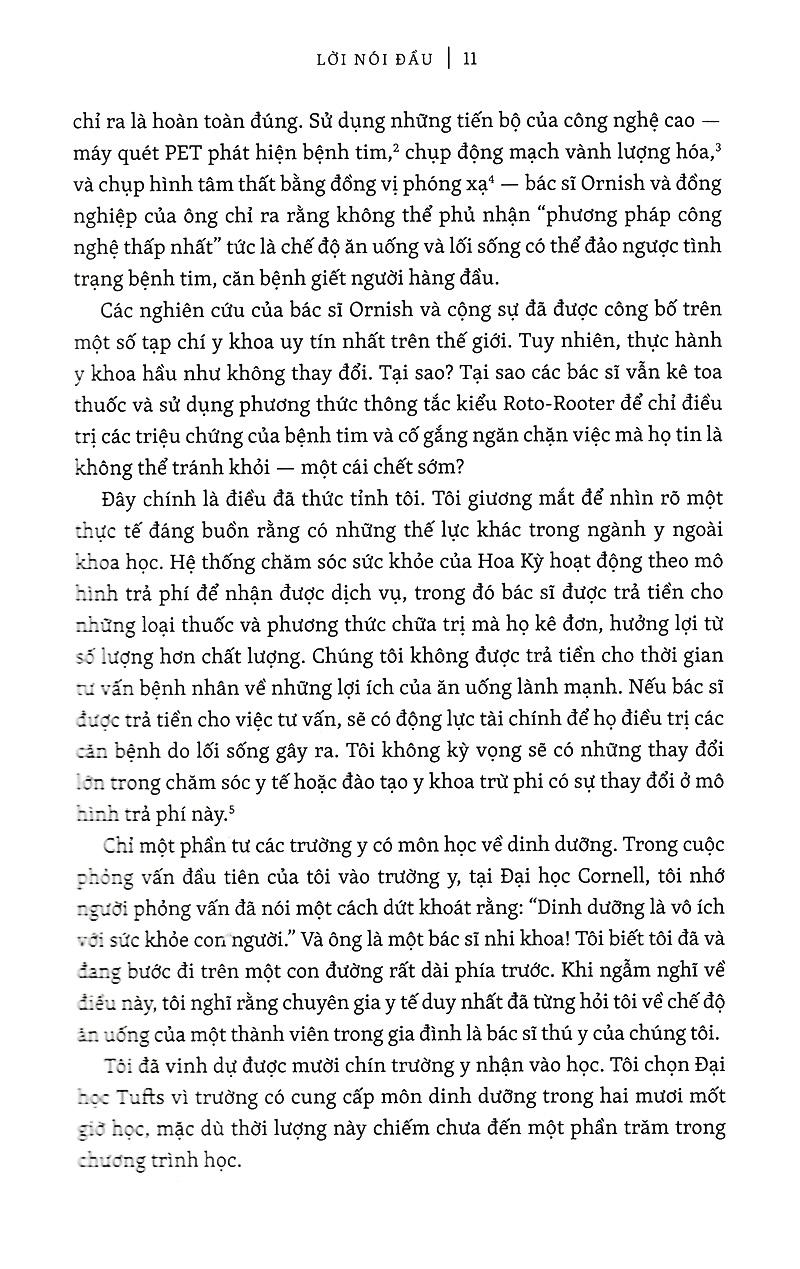 Khảo sát tỉ mỉ 15 nguyên nhân gây tử vong hàng đầu, tác giả-bác sĩ Greger không chỉ trình bày kỹ lưỡng mối liên quan giữa thực phẩm với những căn bệnh nguy hiểm chết người mà còn vạch rõ thiếu sót trong đào tạo y khoa bao lâu nay khiến bác sĩ không đủ kiến thức để cho lời khuyên về dinh dưỡng trong chữa bệnh. Không những thế, ông vạch trần những sự thật đen tối trong việc bác sĩ hưởng lợi khi kê toa thuốc, lợi nhuận khổng lồ của ngành công nghiệp dược chi phối mọi thông tin về các loại thuốc đặc trị như “thần dược” và thực phẩm chức năng tốt hơn tự nhiên! Ngành công nghiệp thịt, sữa, trứng, nước giải khát có gas, thực phẩm chế biến… cùng những thủ đoạn đánh lận con đen trên nhãn thông tin sản phẩm lừa người tiêu dùng… và nhiều tiết lộ choáng váng khác về thực hành y khoa! Tất cả chỉ ra rằng: kê toa thuốc cho bệnh nhân, yêu cầu làm chẩn đoán hình ảnh, thủ thuật nội soi, hay phẫu thuật, … luôn dễ cho bác sĩ (và có lợi ích!) – vì làm theo quy trình – hơn là khuyên bệnh nhân nên ăn thêm bông cải xanh hay các loại quả mọng!