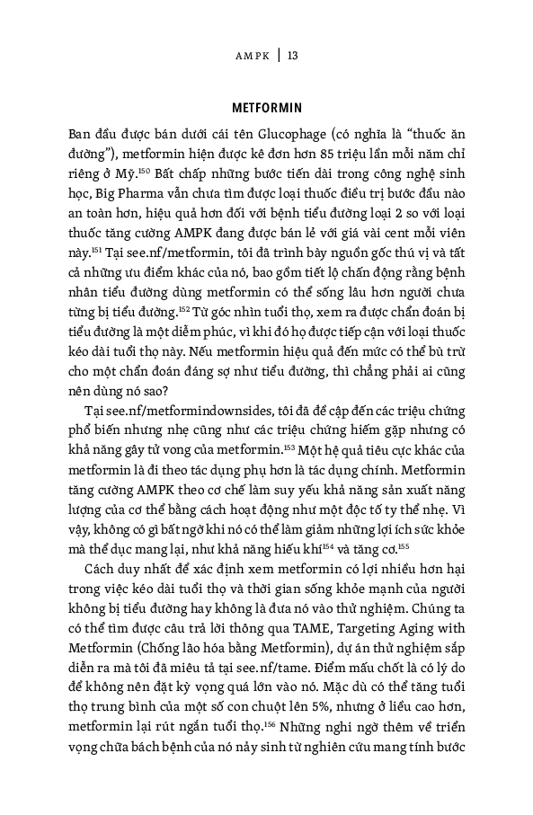 Từ lâu các bác sĩ xem lão hóa là một căn bệnh, nhưng già đi không nhất thiết là đau ốm hơn. Có mười một con đường lão hóa trong các tế bào của cơ thể và chúng ta có thể chặn đứng từng con đường đó. Có thể thúc đẩy các quá trình như tự thực bào, tái chế rác thải không sử dụng được, bằng spermidine, một hợp chất có trong đậu nành lên men tempeh, nấm và mầm lúa mì. Có thể thải loại một số tế bào “xác sống” già nua gây viêm và liên quan đến nhiều bệnh tật do tuổi tác bằng các loại thực phẩm giàu quercetin như hành tây, táo và cải xoăn. Và chúng ta có thể chống lại tác động của lão hóa mà không tốn kém. Tại sao phải chi tiền mua serum dưỡng da vitamin C và nicotinamide khi bạn có thể tự làm với giá rẻ hơn tới 2.000 lần?