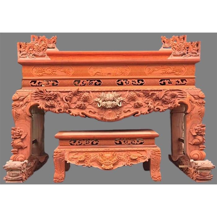 Án Gian Thờ, Bàn Thờ Gia Tiên Chân 14 Gỗ Hương Đá Nam Phi