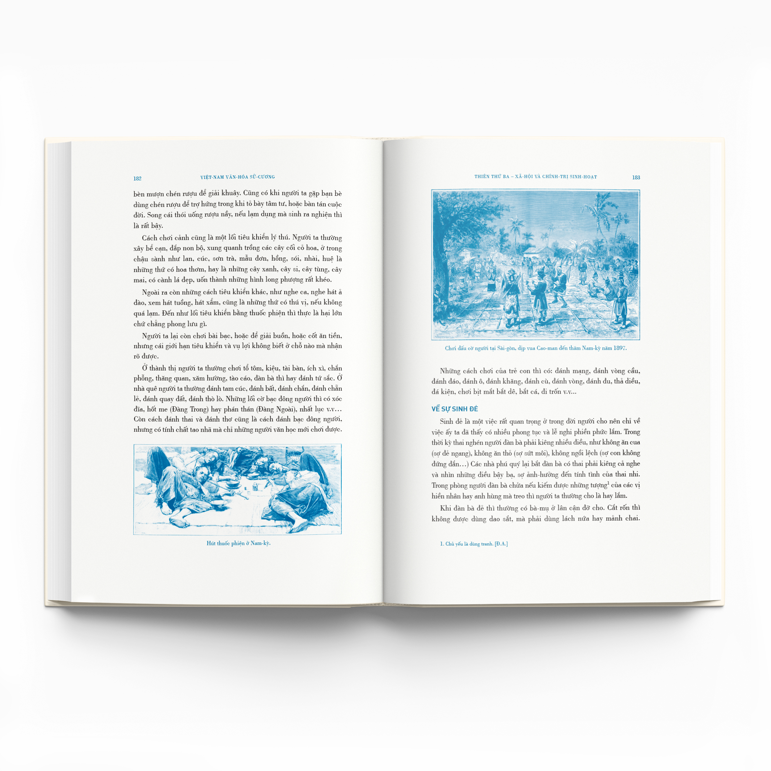 Ấn bản Việt Nam văn hoá sử cương của Đông A dựa theo bản in lần đầu năm 1938 của Quan-hải tùng-thư, có tham khảo một số chi tiết trong bản in năm 1951 của Xuất bản Bốn phương, Viện Giáo khoa - Hiên Tân Biên. Trong lần in này, ban biên tập Đông A sử dụng một số minh họa trong các bản sách tiếng Pháp về Đông Dương và các nguồn tư liệu ở bảo tàng, tranh dân gian, sách báo xư
