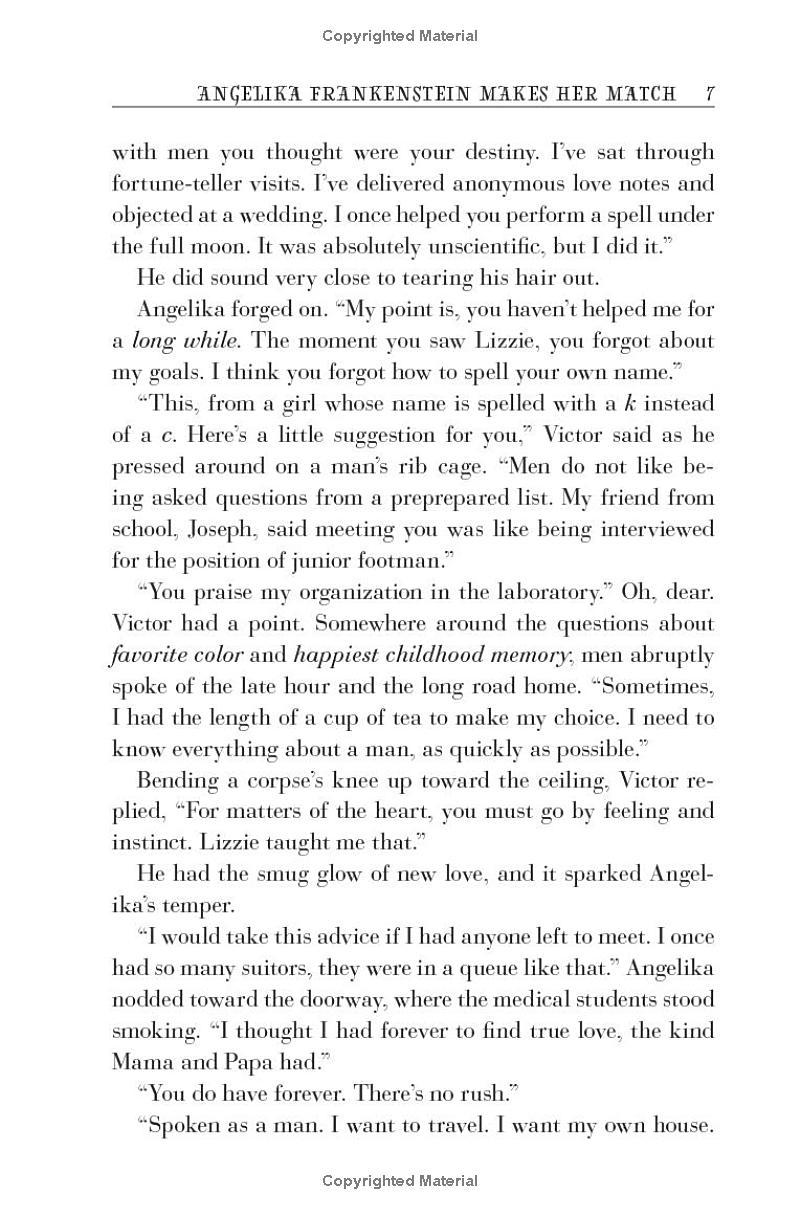 For generations, every Frankenstein has found their true love and equal, unlocking lifetimes of blissful wedded adventure. Clever, pretty (and odd) Angelika Frankenstein has run out of suitors and fears she may become the exception to this family rule. When assisting in her brother Victor’s ground-breaking experiment to bring a reassembled man back to life, she realizes that having an agreeable gentleman convalescing in the guest suite might be a chance to let a man get to know the real her. For the first time, Angelika embarks upon a project that is all her own.