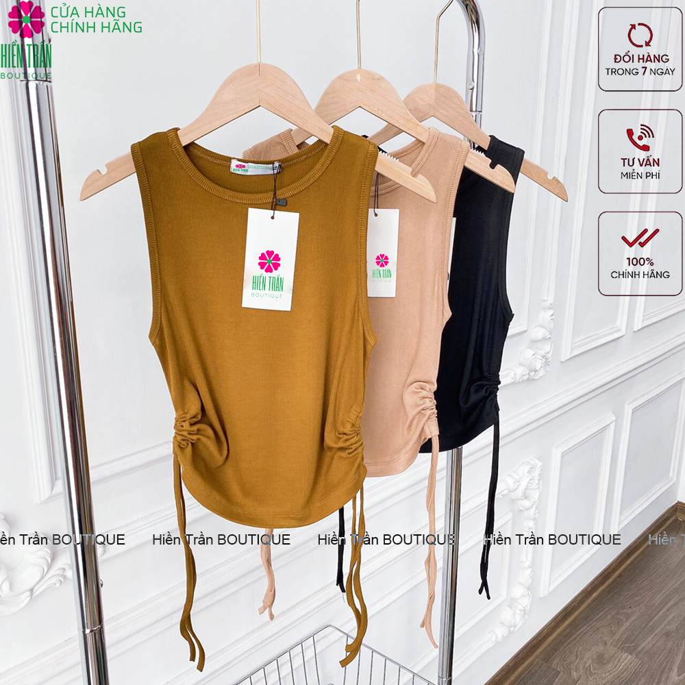 ✨Áo ba lỗ croptop nữ Hiền Trần BOUTIQUE sát nách kiểu dây rút hai bên không tay dáng ôm body tank top vải cotton co giãn tốt