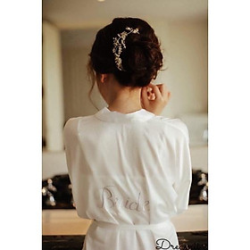 Với thiết kế ngọt ngào, một bộ choàng không thể thiếu trong bộ ảnh của cô dâu với chiếc đai thắt ngang tạo điểm nhấn của bộ đồ ngủ cùng với chữ được thêu cẩn thận ở sau áo.