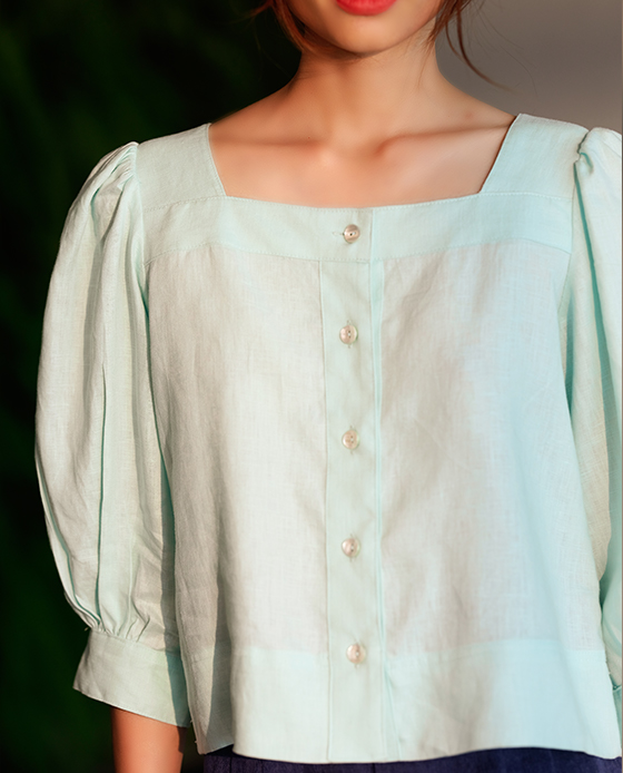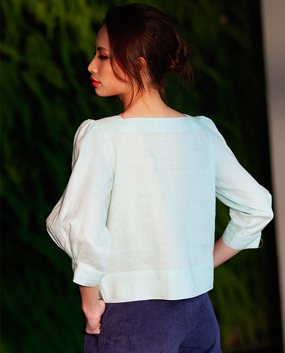 Áo Croptop Linen Aqua TOP132 Thời trang thiết kế Hity