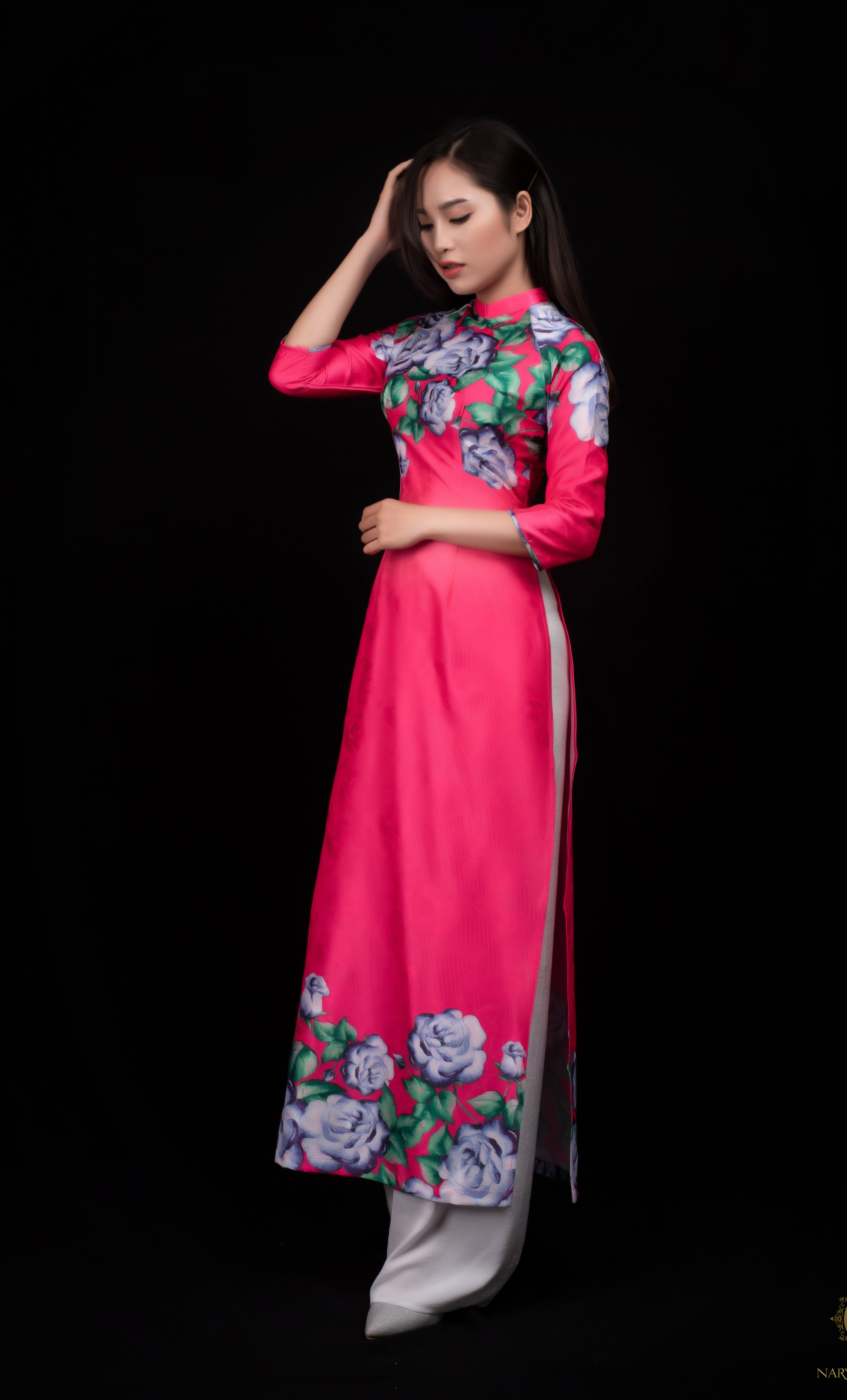 ÁO DÀI TRUYỀN THỐNG IN HOA HỒNG TẶNG CÀI TÓC XINH XẮN + chất liệu :LỤA NHẬT 3D CAO CẤP ( MỀM MẠI, MỊN, MÁT, CÓ ĐỘ RŨ TĂNG THÊM PHẦN DUYÊN DÁNG). + QUẦN