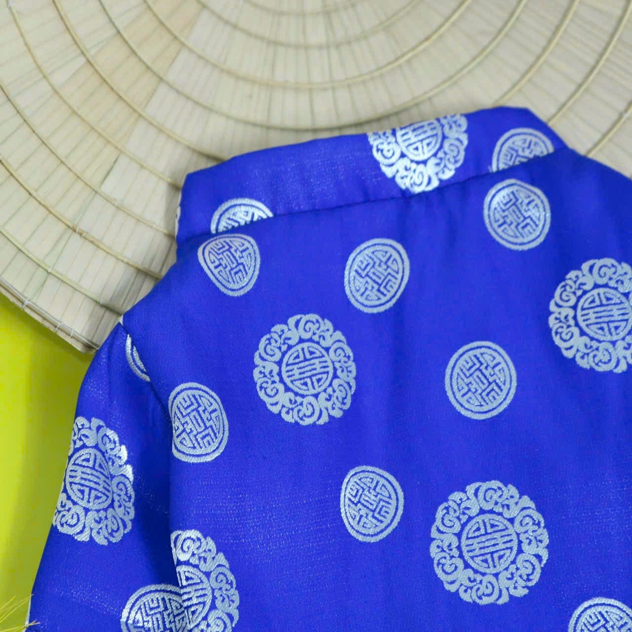 - Thiết kế : Áo Tết gấm thái cao cấp, mát, bền, đẹp, dễ thương. In hình đồng tiền dễ thương . Công nghệ in sắc nét, bền và đẹp, tha hồ giặt