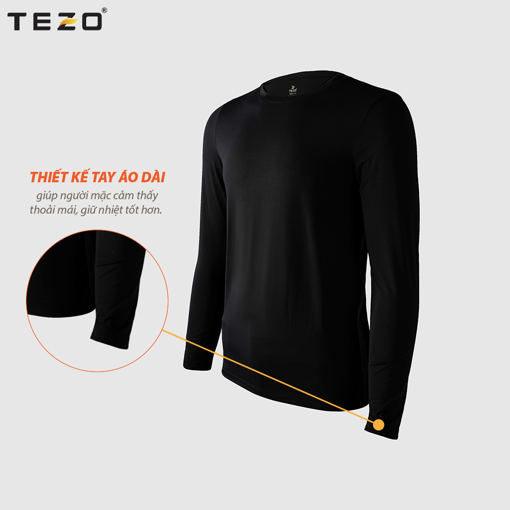 ✨Áo giữ nhiệt nam TEZO, cổ tròn dài tay chất liệu cotton co giãn thoải mái hai màu đen trắng