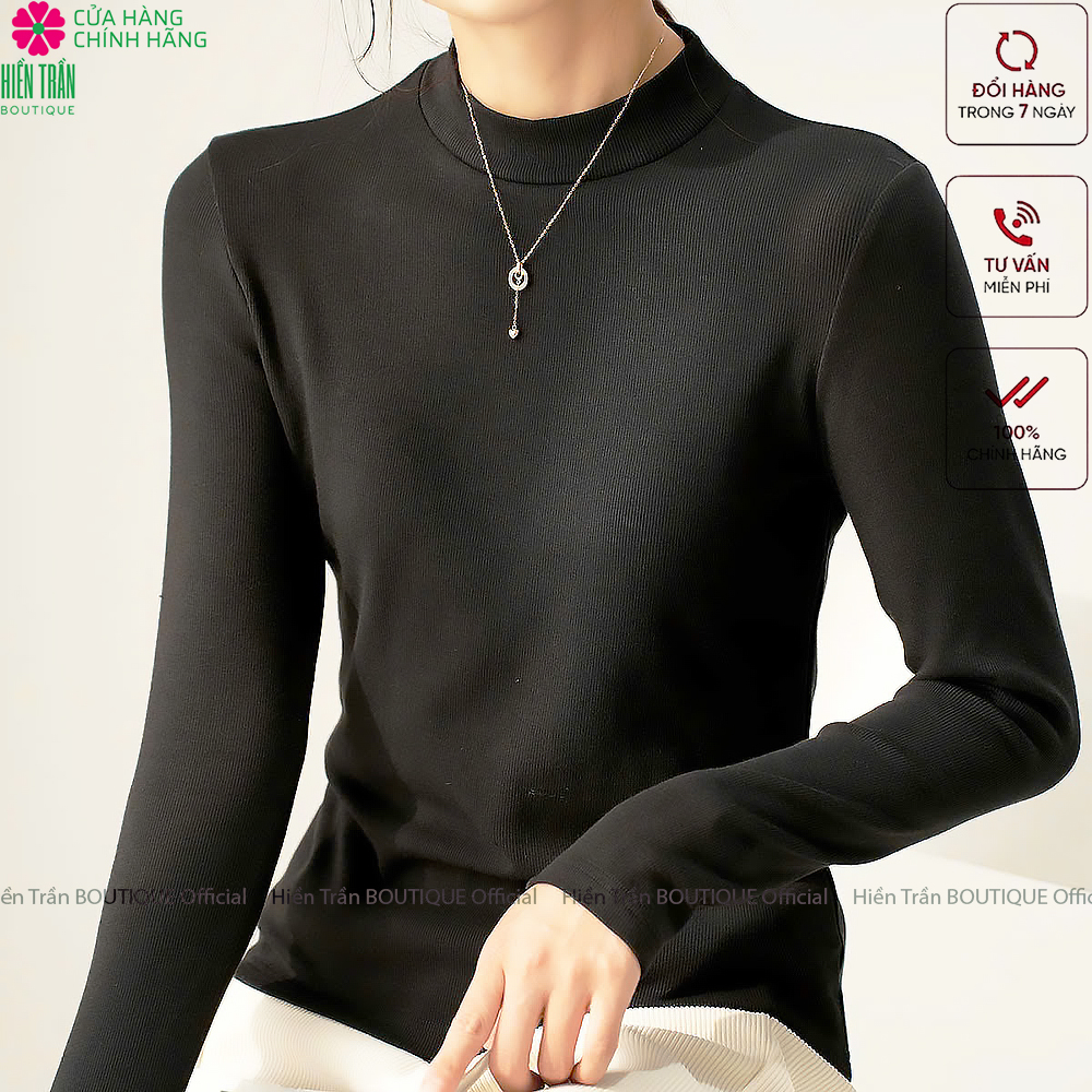 ✨Áo giữ nhiệt nữ Hiền Trần BOUTIQUE cổ cao dài tay chất vải thun kiểu dáng ôm nhẹ phong cách thanh lịch-A6