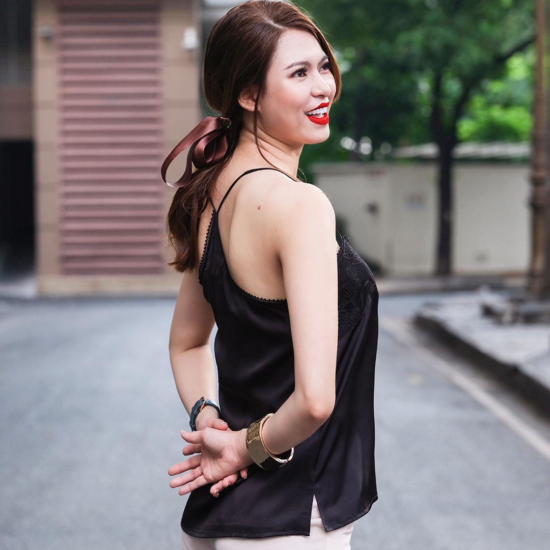 Áo hai dây camisole cơ bản, là chiếc aó thiết yếu mà mỗi người phụ nữ đều cần. Mặc lót bên trong, mặc phối cùng áo vest, mặc phối cùng quần shorts váy ngắn đi